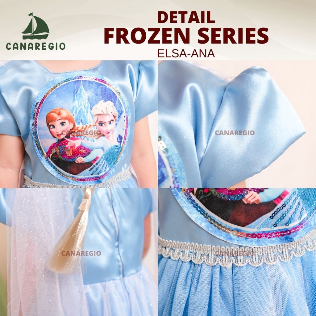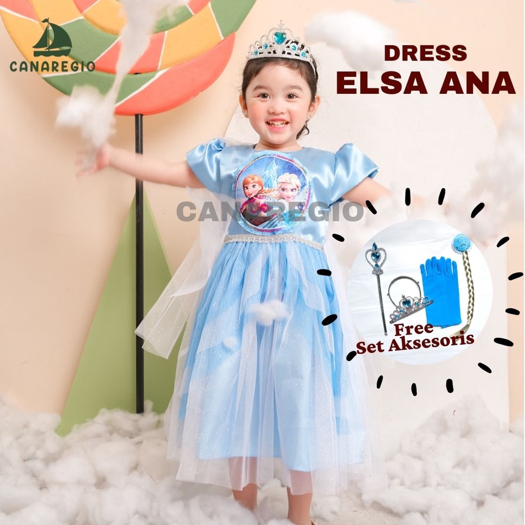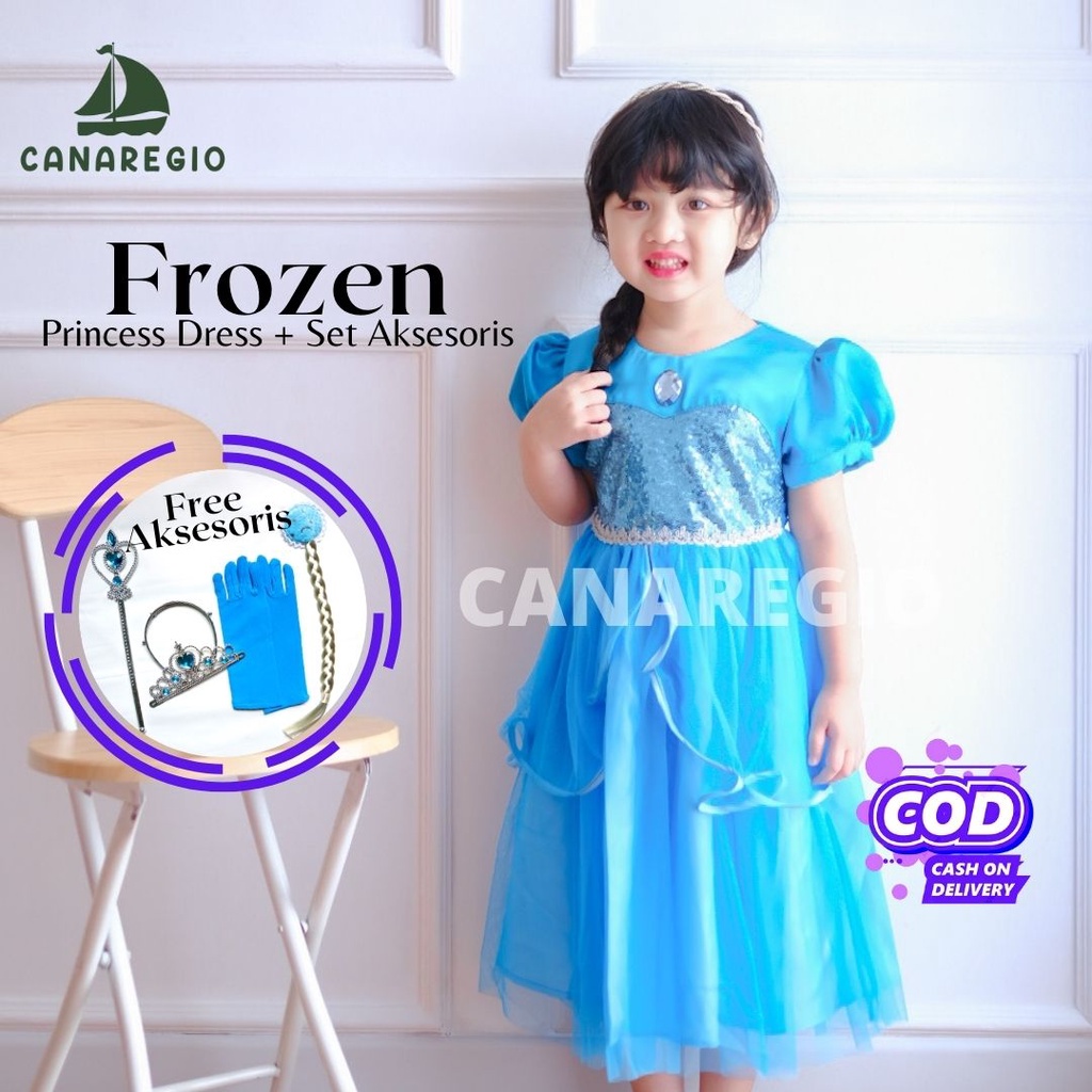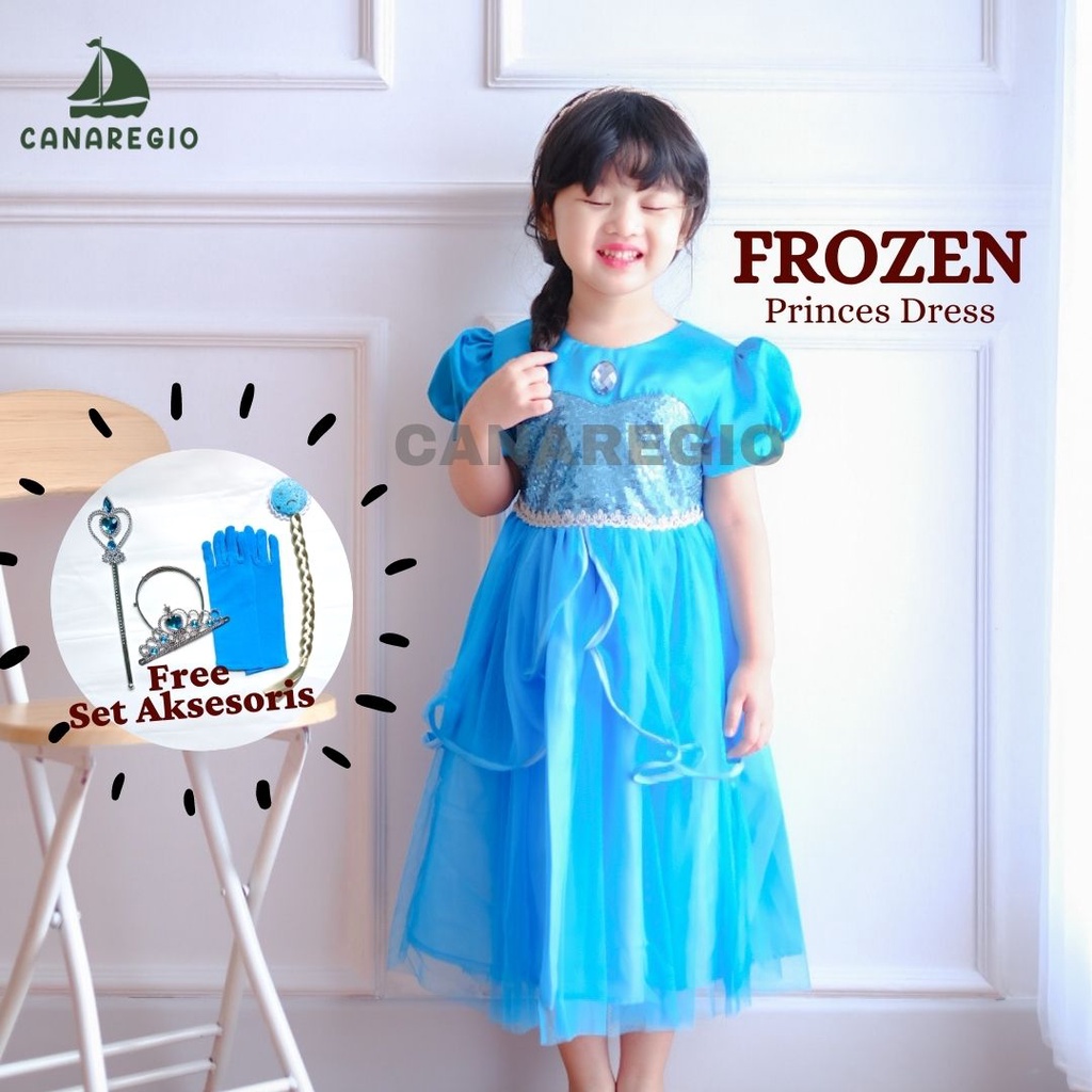 GRATIS AKSESORIS | Set Baju Frozen + Set Aksesoris Mahkota | Gaun Frozen | Baju Frozen | gaun anak perempuan | baju elsa frozen | Frozen Series | Gaun Pesta Anak Perempuan | Set Aksesories Frozen Lengkap 4in1