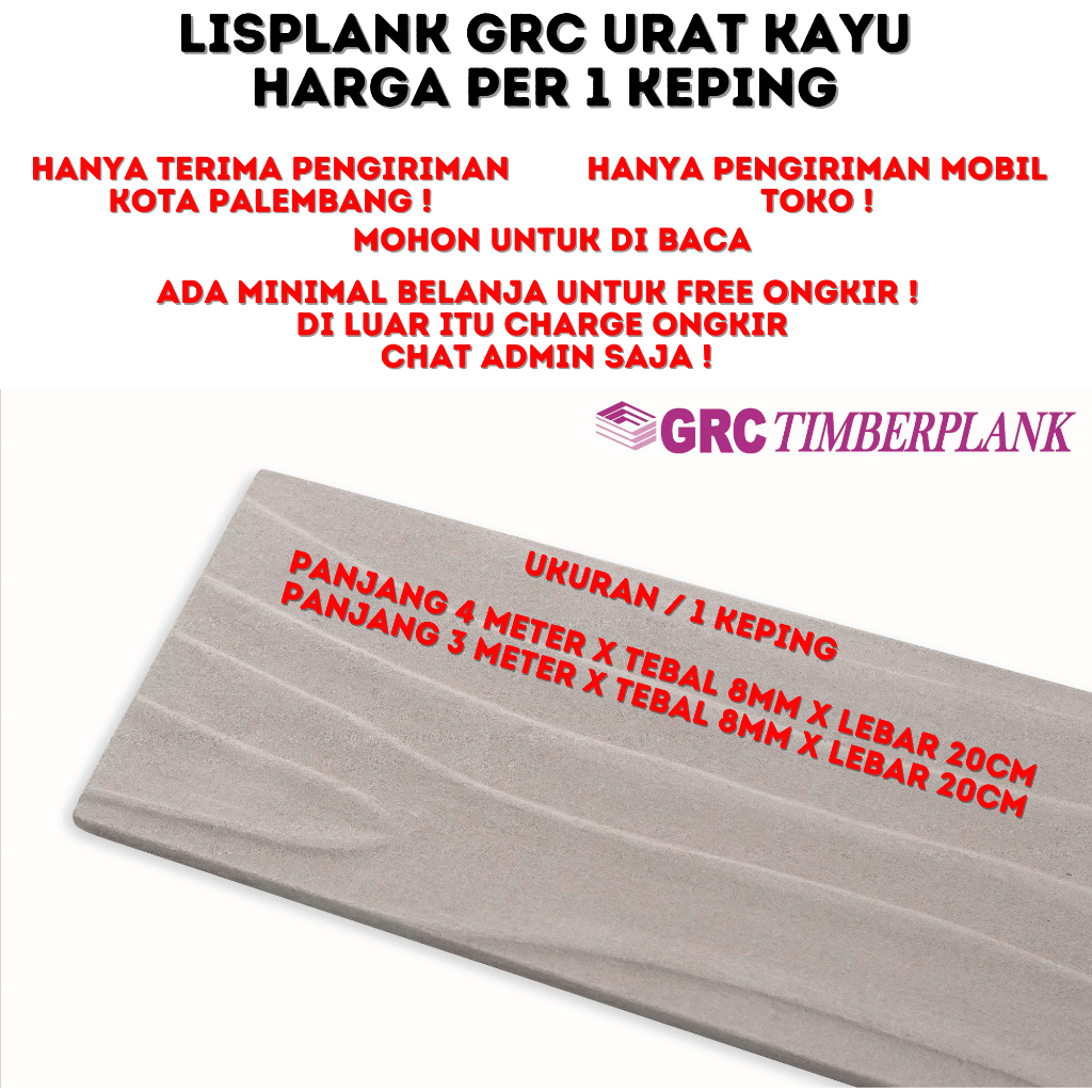 GRC Lisplank Serat Kayu Lebar 20CM Panjang 3M 4M Khusus Antar TOKO