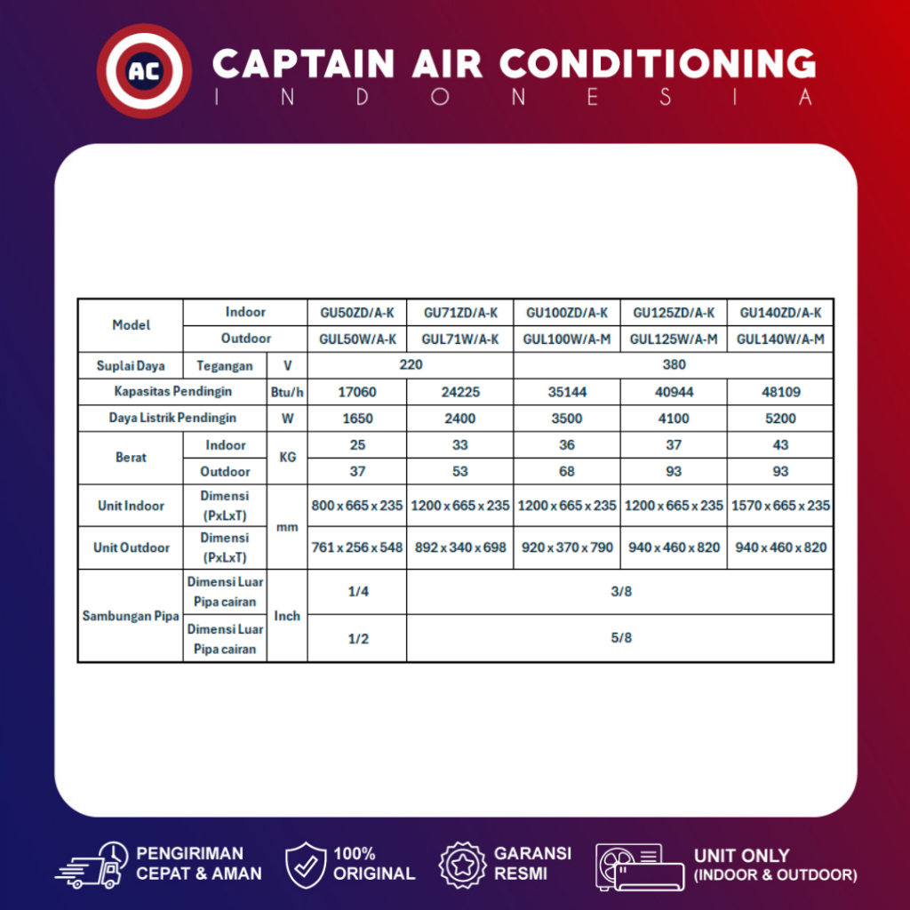 GREE AC Floor Ceiling GU-140ZD/A-K 6 PK Non Inverter