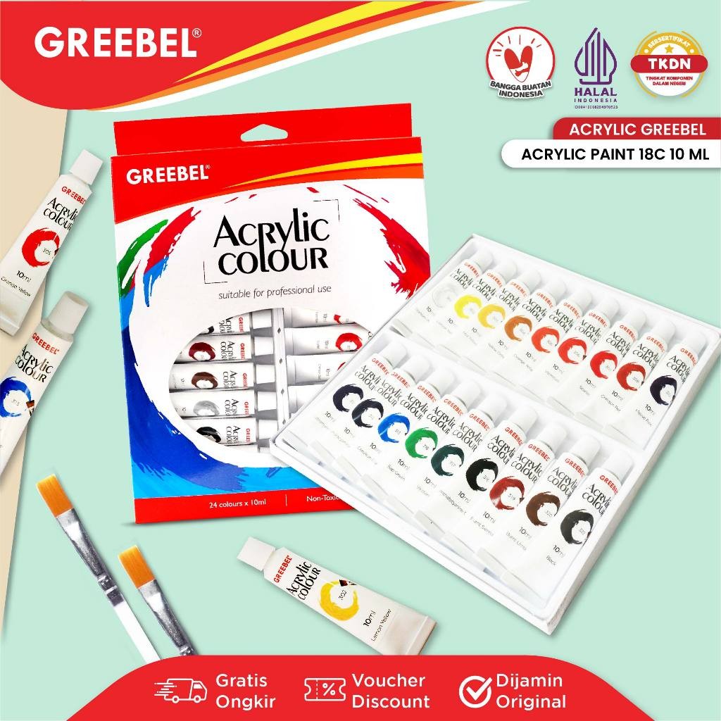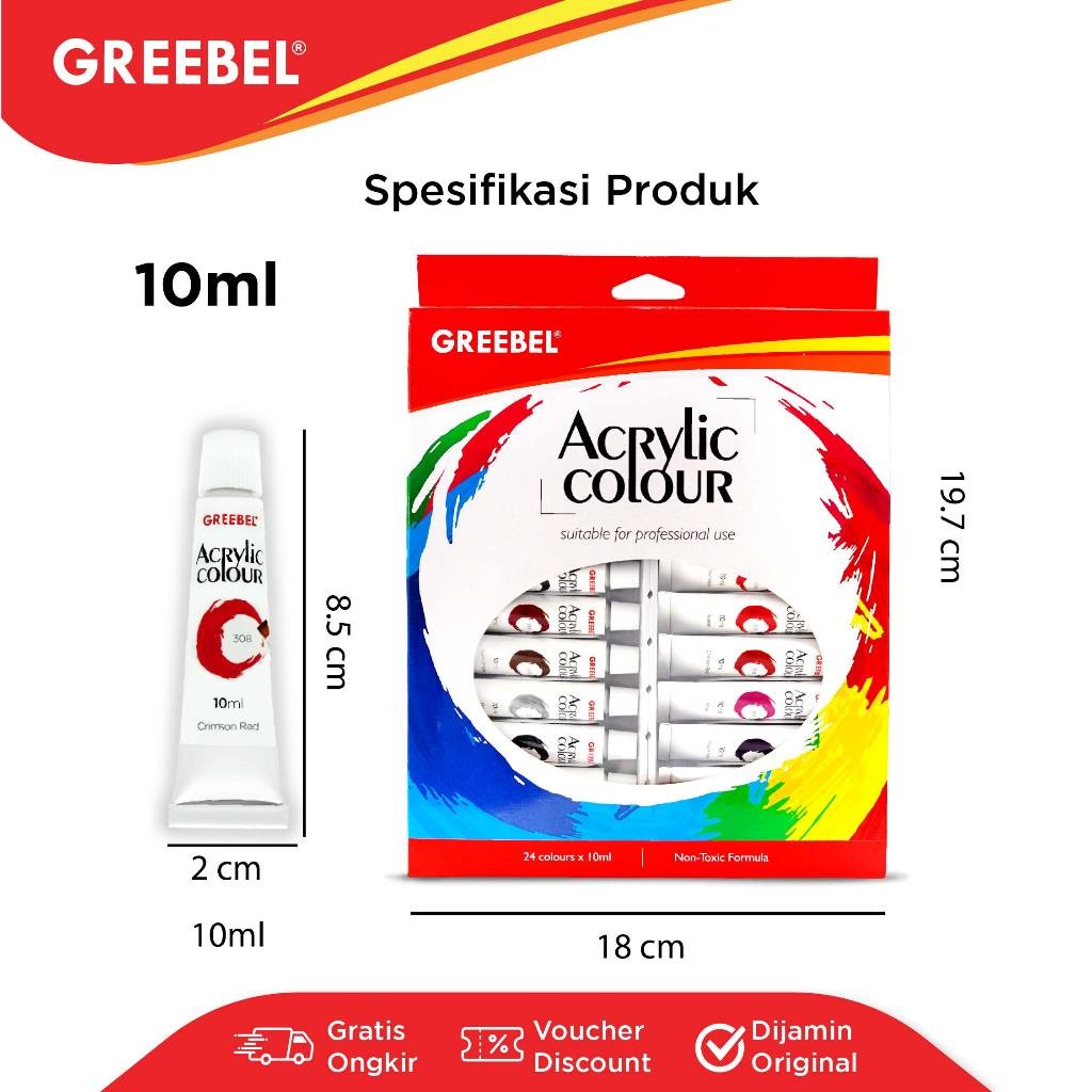 GREEBEL Cat Lukis Akrilik 10ml 1 Set 12 18 24 Warna / Acrylic Paint Color (Acrylic 10ML) Cat Melukis