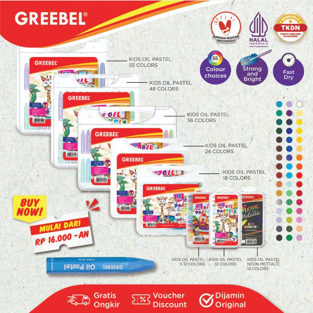 GREEBEL Crayon Krayon Kids Oil Pastel 12 18 24 36 48 55 72 Warna - Crayon Greebel Krayon Sekolah Anak & Professional Non Toxic