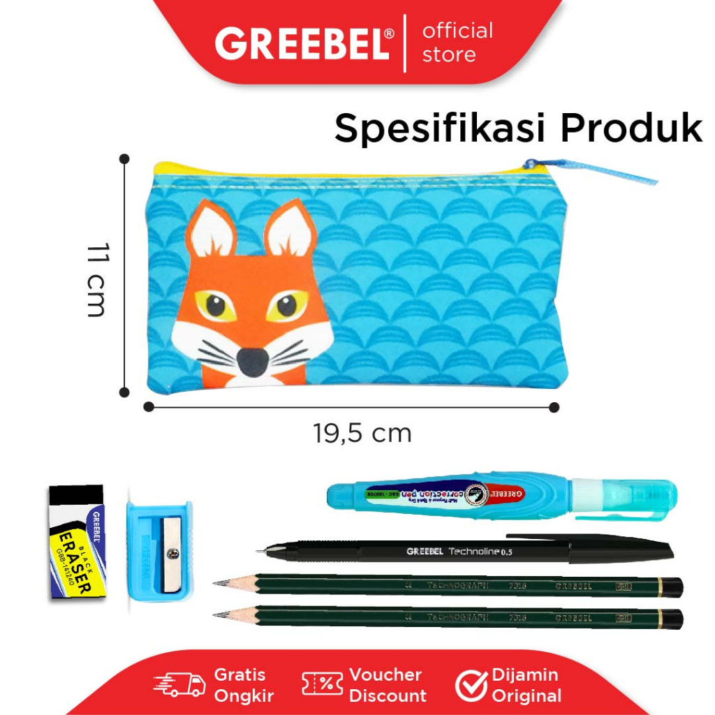 GREEBEL PAKET HEMAT ALAT TULIS PENSIL BAG 614-Pensil 2b, Pulpen, Rautan, Tip x, Tempat Pensil