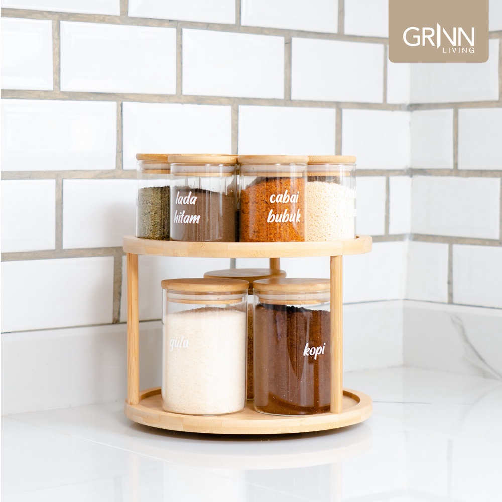 GRINN LIVING Hazel Rak Serbaguna /Tempat Bumbu Dapur Putar Susun 2Tingkat dari Bambu /Kayu Aesthetic