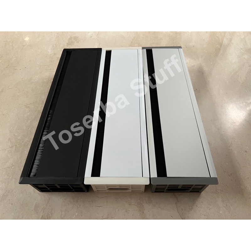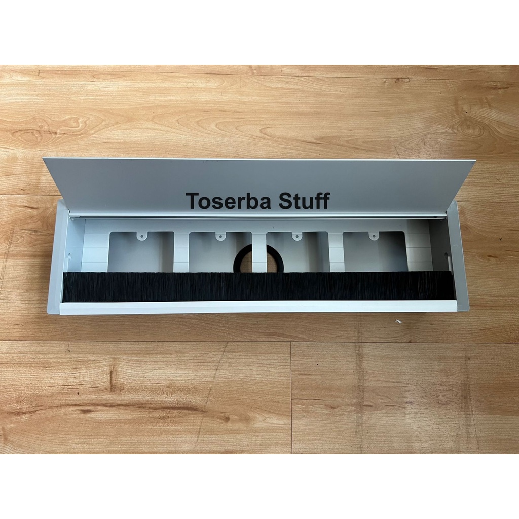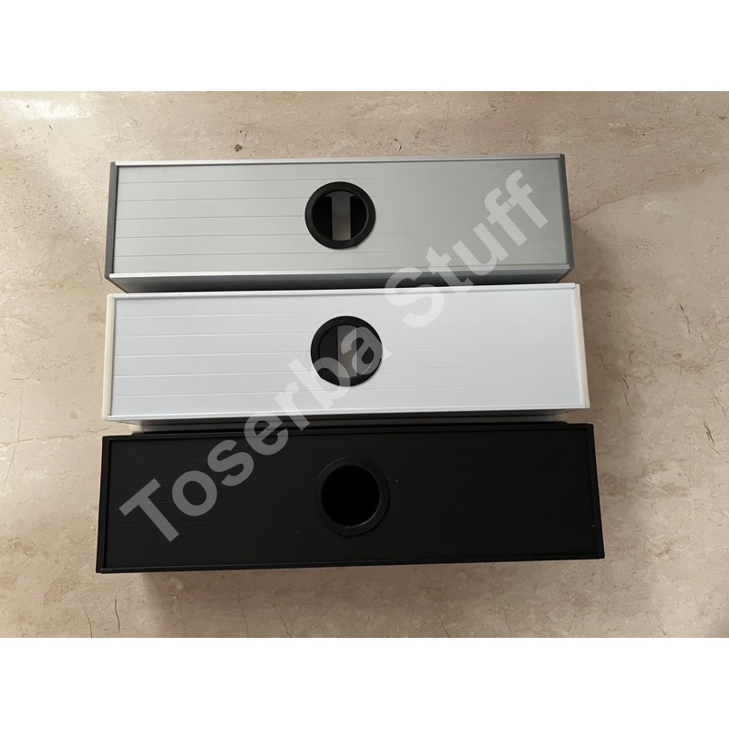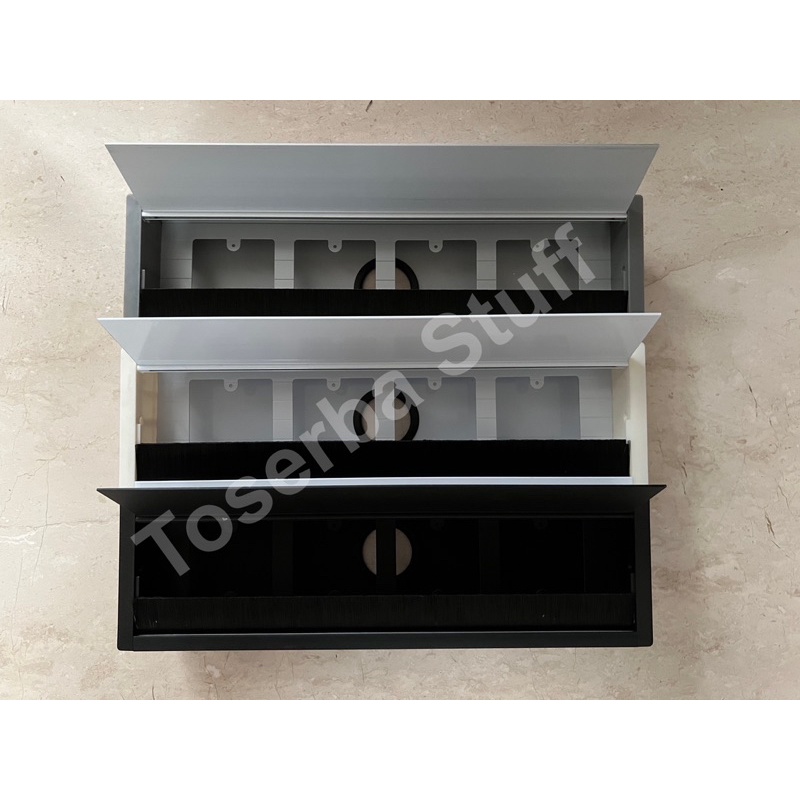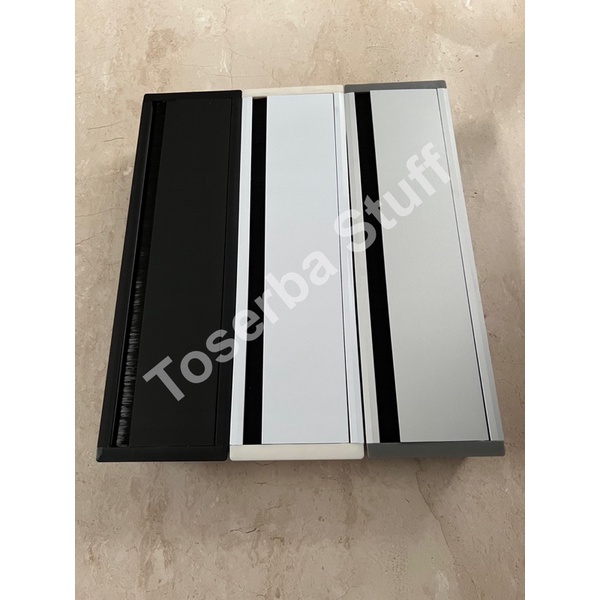 GROMMET BOX KOTAK PENUTUP LUBANG KABEL MEJA KERJA KANTOR 40CM ISI 4 EMPAT LUBANG WARNA PUTIH HITAM SILVER ISIAN BISA CUSTOM