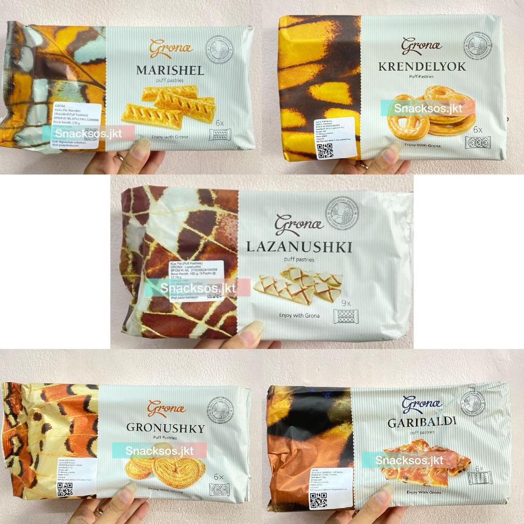 GRONA MARISHEL PUFF PASTRY PASTRIES / GRONA LAZANUSHKI PUFF PASTRY ORIGINAL / GRONA KRENDELYOK PUFF PASTRIES PRETZEL / GRONA GARIBALDI / GRONA GRONUSHKY
