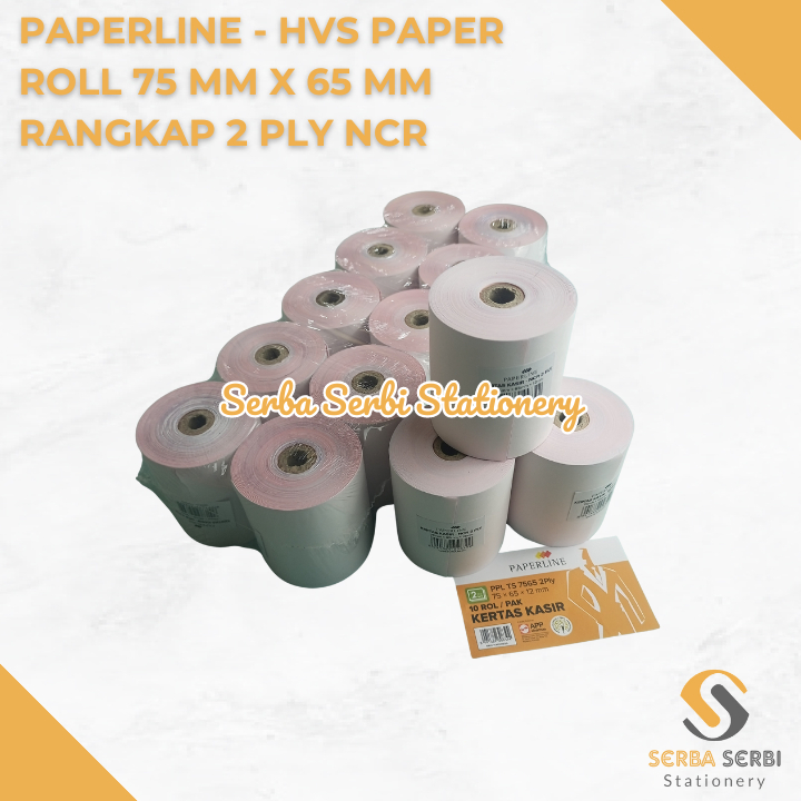 GROSIR (1 BIJI) PAPERLINE - HVS PAPER ROLL / TELSTRUK / KERTAS STRUK KASIR 75 MM X 65 MM / 75X65 MM RANGKAP 2 PLY NCR