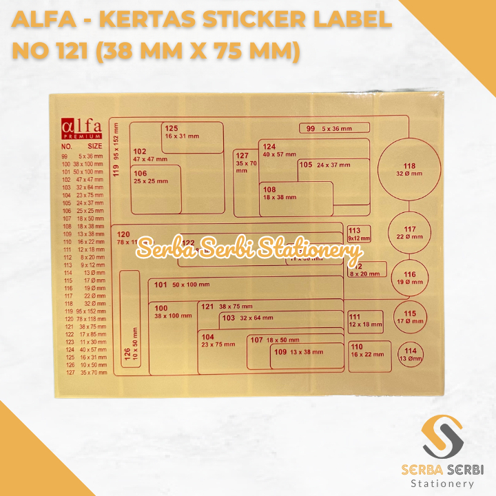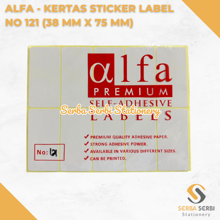 GROSIR (1 PAK ISI 7 LEMBAR) ALFA - KERTAS STICKER / STIKER LABEL HARGA / NAMA / UNDANGAN NO 121 (38 MM X 75 MM)