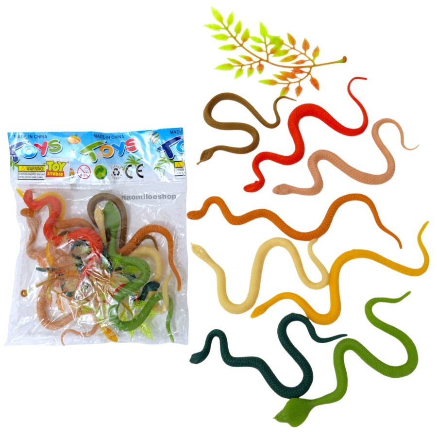 GROSIR 12pc Mainan Ular Karet Kecil isi 12 | Ular ularan karet - Mainan Miniatur Figure Binatang Reptil