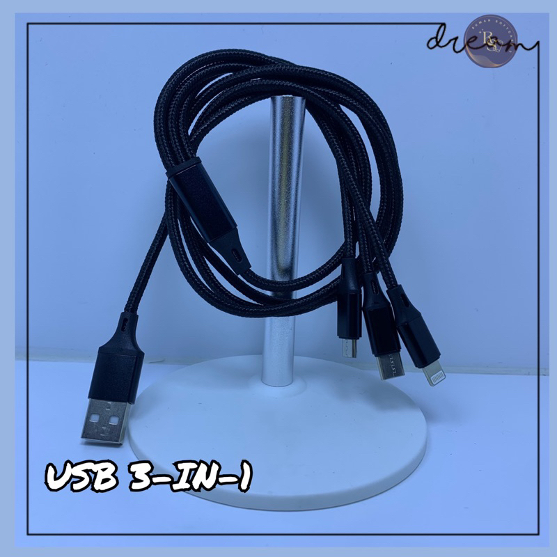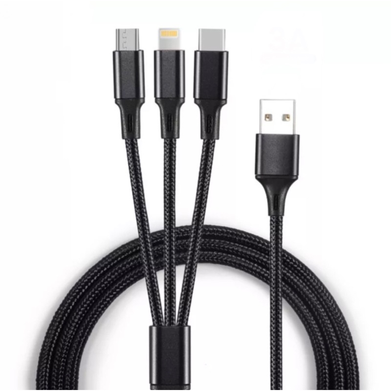 GROTIC Kabel Charger 3 in 1 Micro USB Type C Lighning 3A Fast Charging 1.2M Nylon Braided Cable