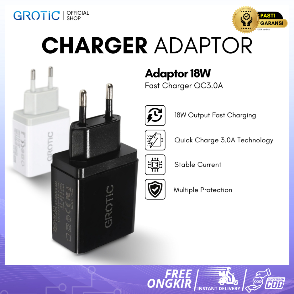 GROTIC Kepala Charger Fast Charging 18W QC3.0A Charger Adaptor USB HC-374