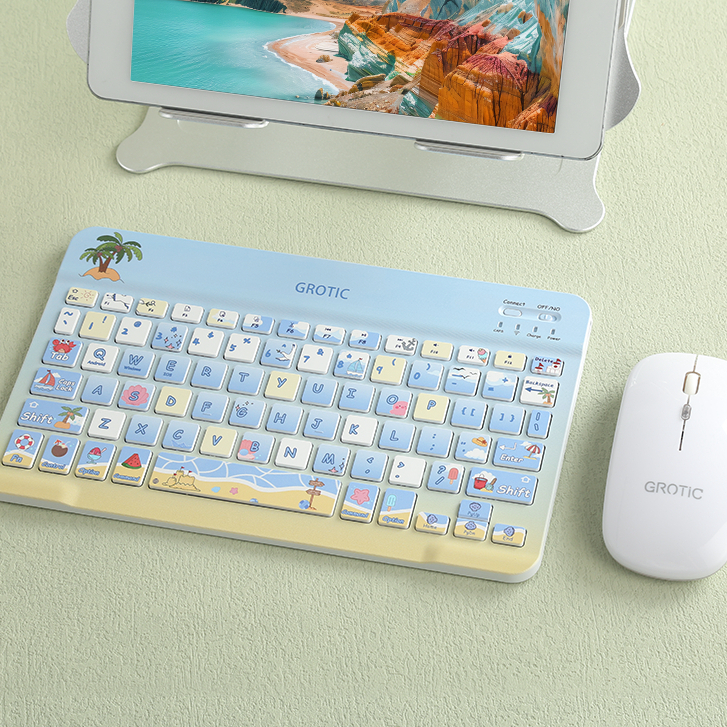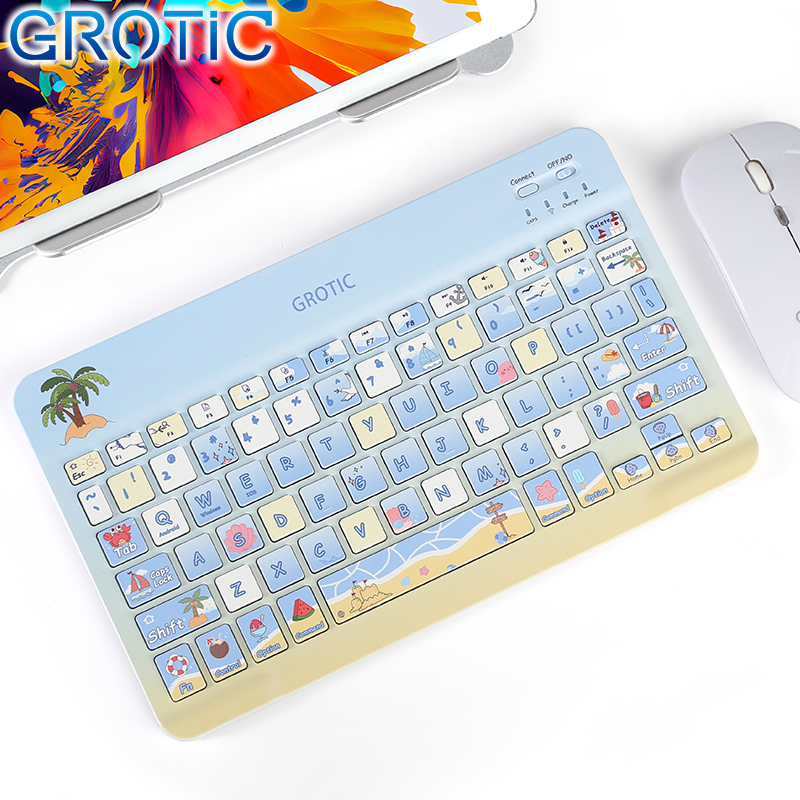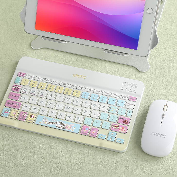 GROTIC Keyboard Set Mouse Bluetooth Wireless 10 Inch Colorful Theme Keyboard For iPad Laptop Android iPhone