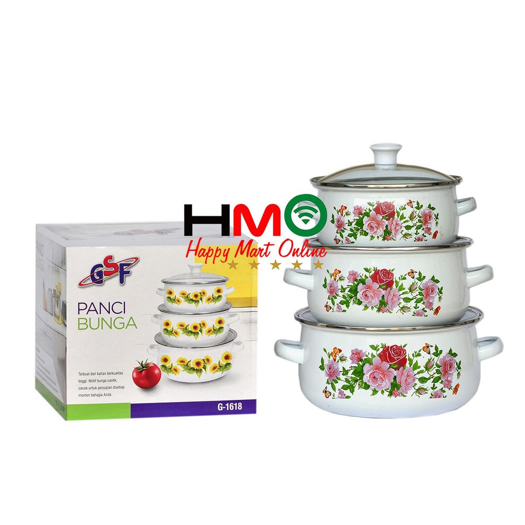 GSF Panci Bunga Enamel Susun 3 Panci Set GSF-1618 GSF 1618