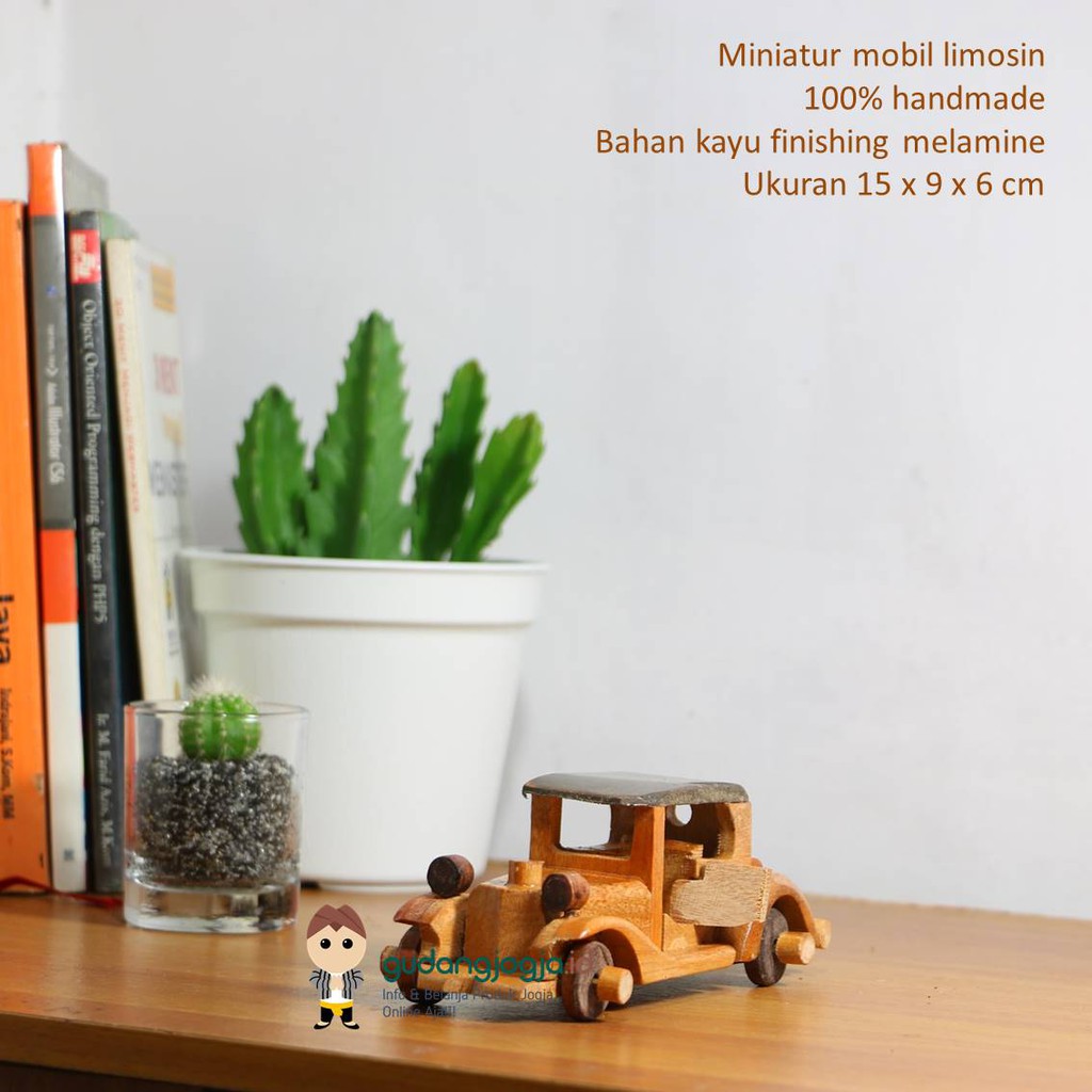 GUDANGJOGJAID. SOUVENIR UNIK MINIATUR DIECAST MOBIL LIMOSIN KAYU UKURAN 15X9X6 CM. OLEH OLEH JOGJA