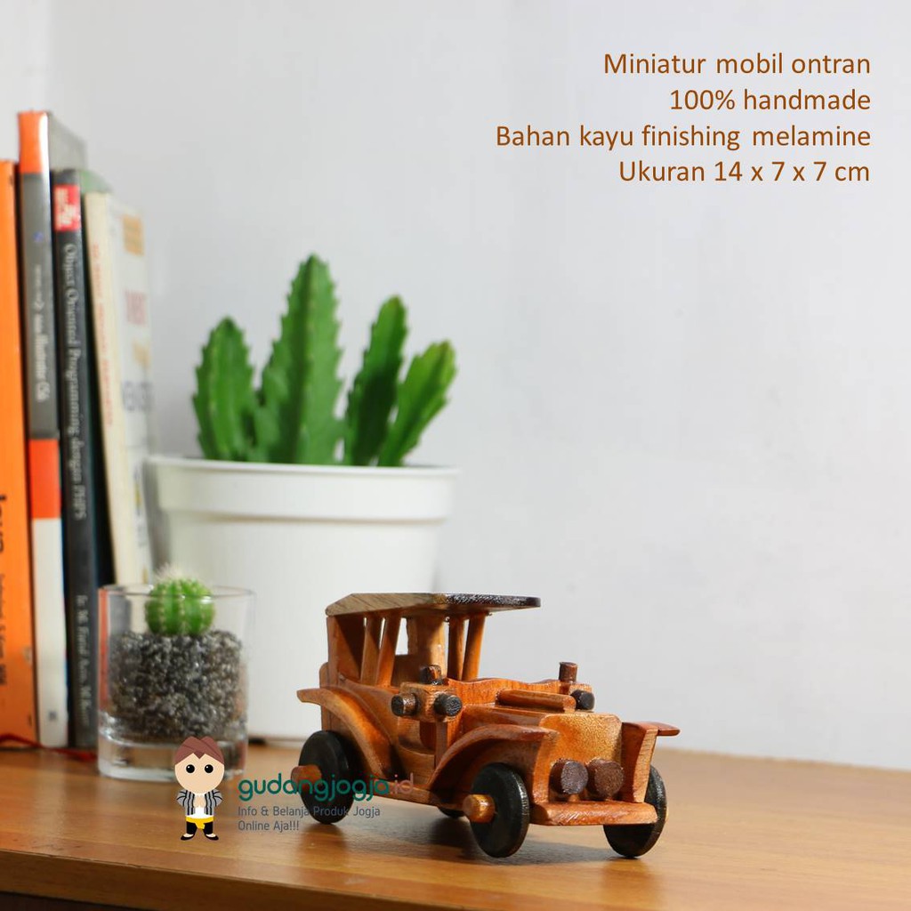 GUDANGJOGJAID. SOUVENIR MINIATUR DIECAST MOBIL ONTRAN KAYU UKURAN 14X7X7 CM. OLEH OLEH JOGJA