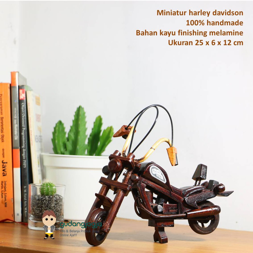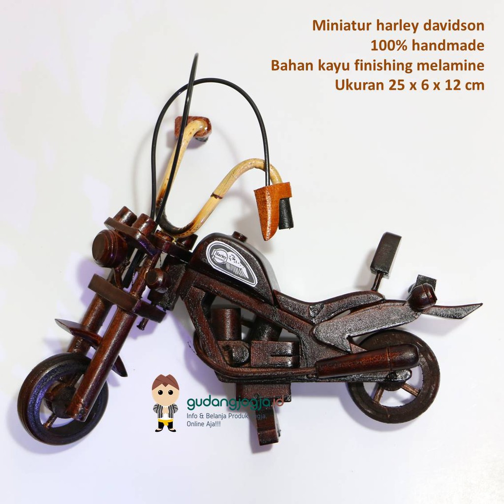 GUDANGJOGJAID. SOUVENIR MINIATUR DIECAST MOTOR HARLEY DAVIDSON KAYU UKURAN 25X6X12 CM