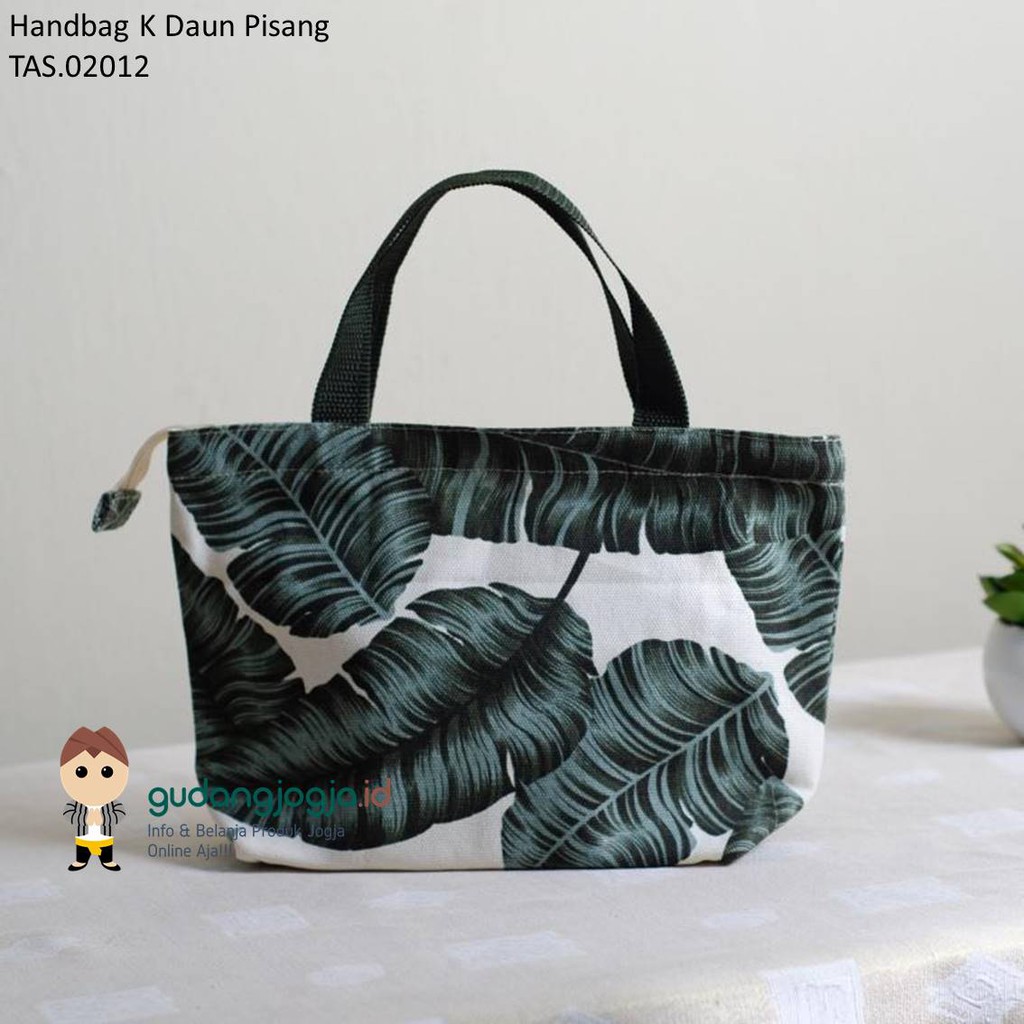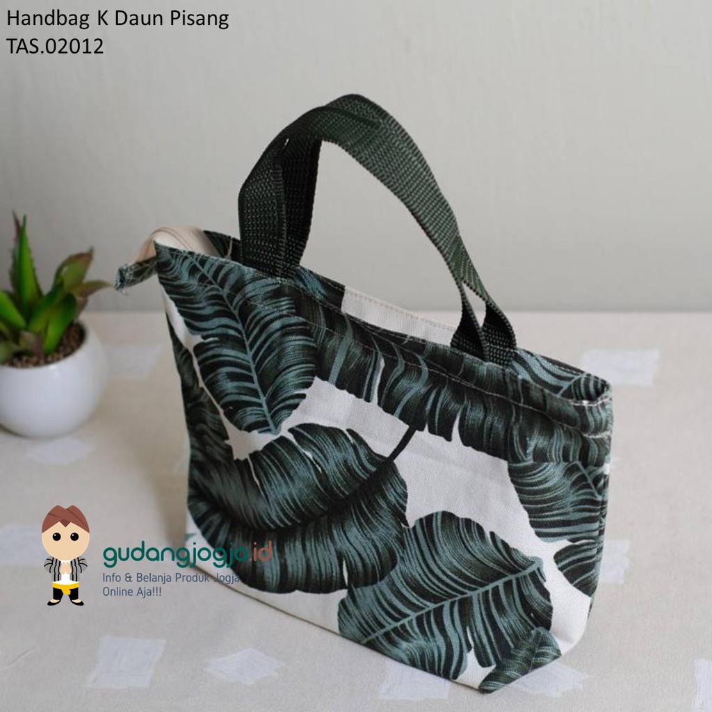 GUDANGJOGJAID. TAS KANVAS HAND BAG KANVAS KECIL MOTIF DAUN PISANG