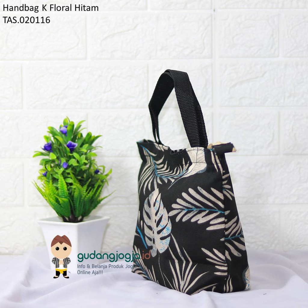 GUDANGJOGJAID. TAS KANVAS HAND BAG KANVAS KECIL MOTIF FLORAL LATAR HITAM