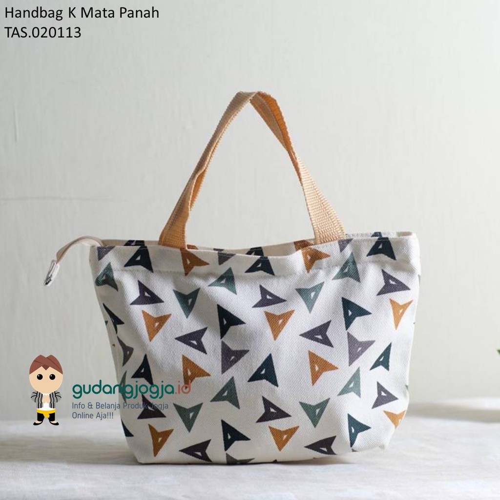 GUDANGJOGJAID. TAS KANVAS HAND BAG KANVAS KECIL MOTIF MATA PANAH. SOUVENIR JOGJA