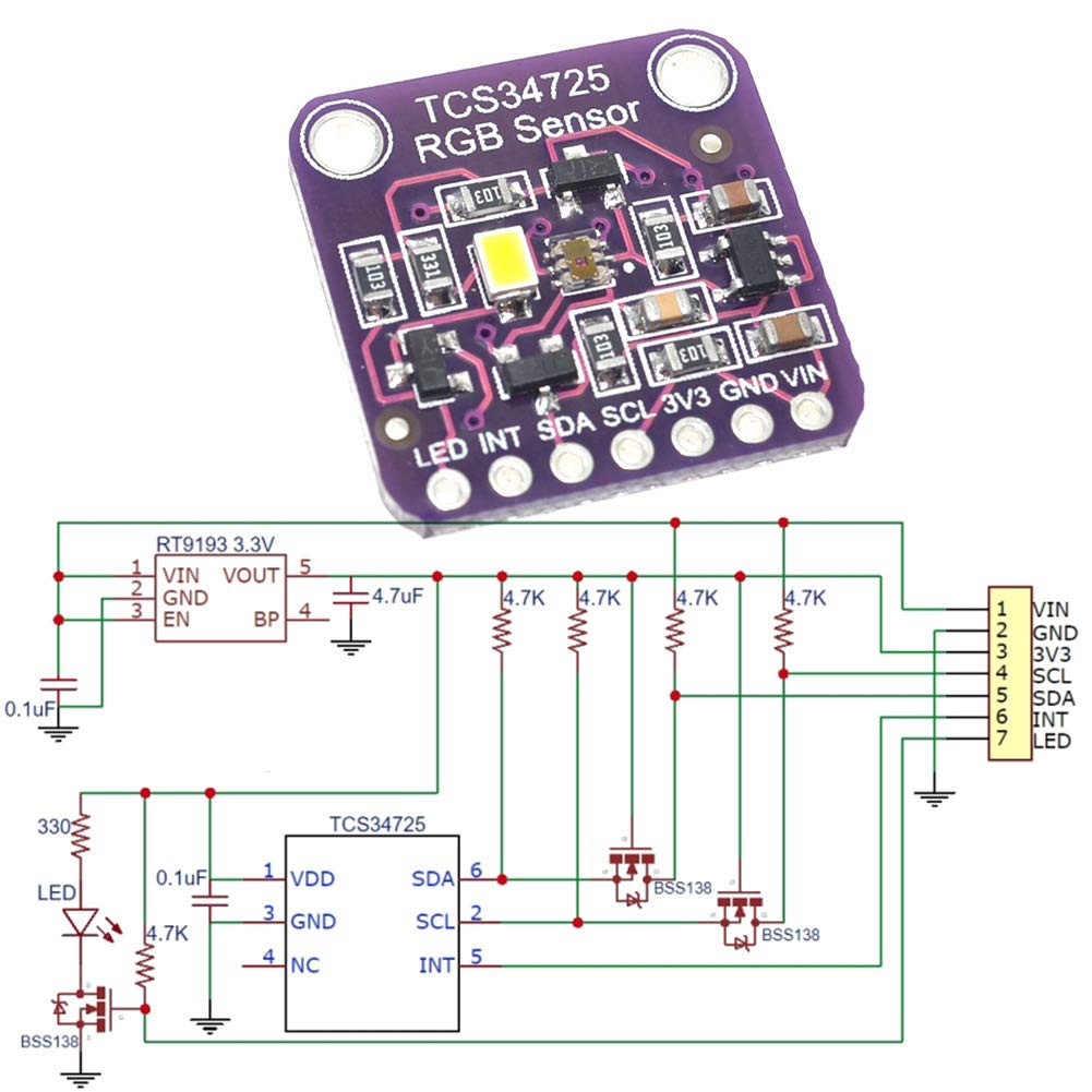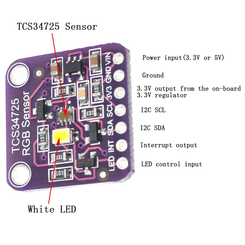 GY-33 CJMCU-34725 TCS34725 RGB COLOR SENSOR WARNA I2C IR FILTER WHITE LED MODULE ARDUINO RASPBERRY NODEMCU I2C