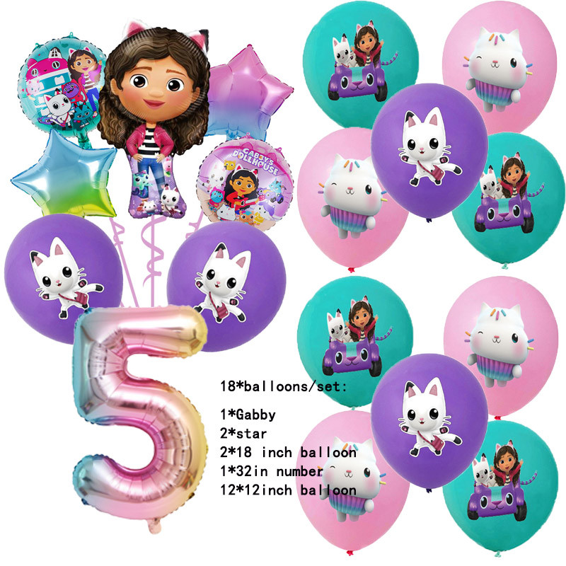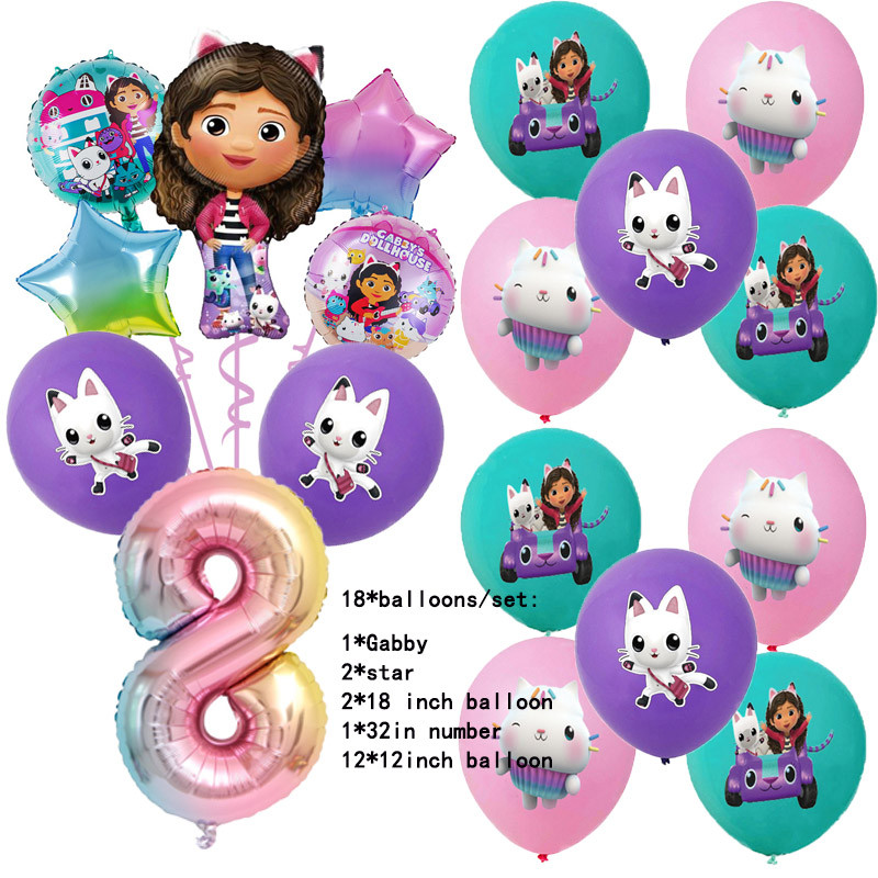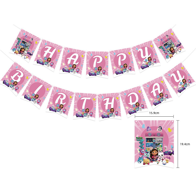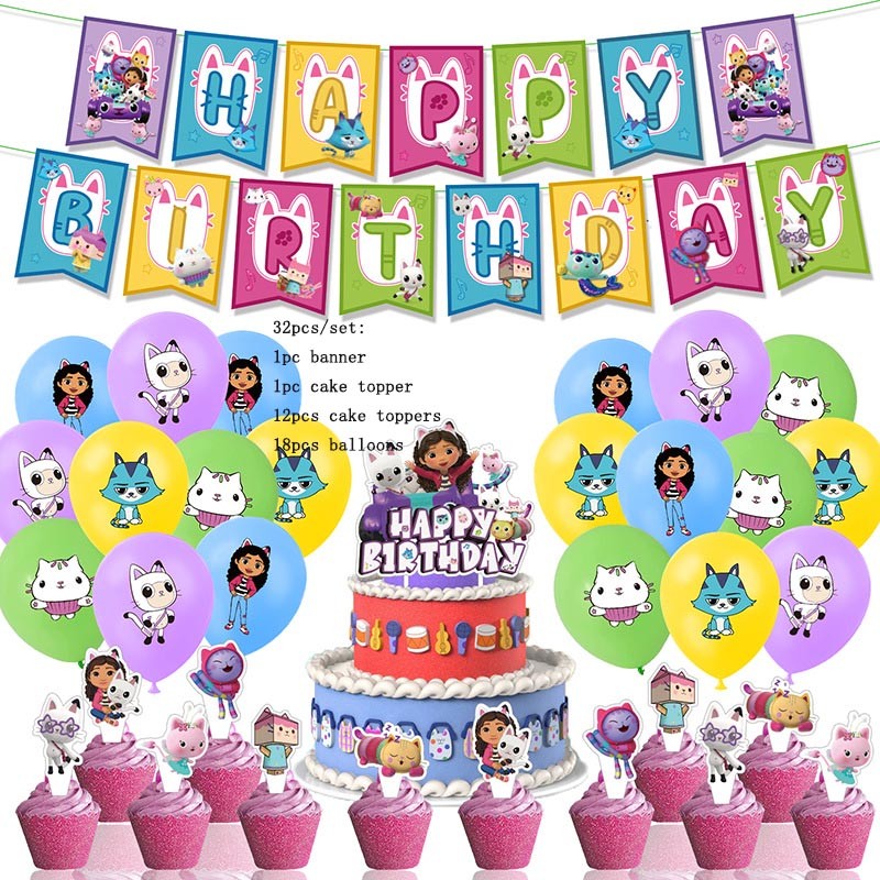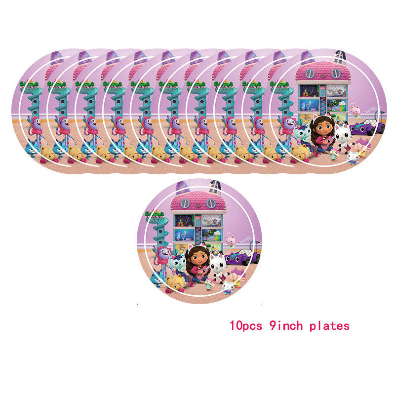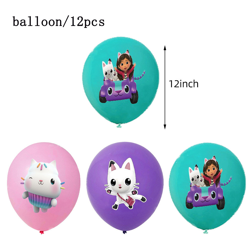 Gabbys Dollhouse Birthday Decoration Cats Balloon Disposable Tableware Backdrop For Girl Gabby Doll House Figures Party Supplies