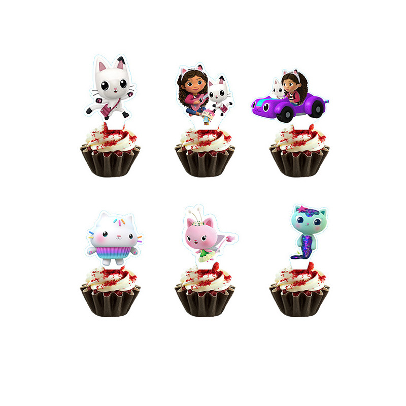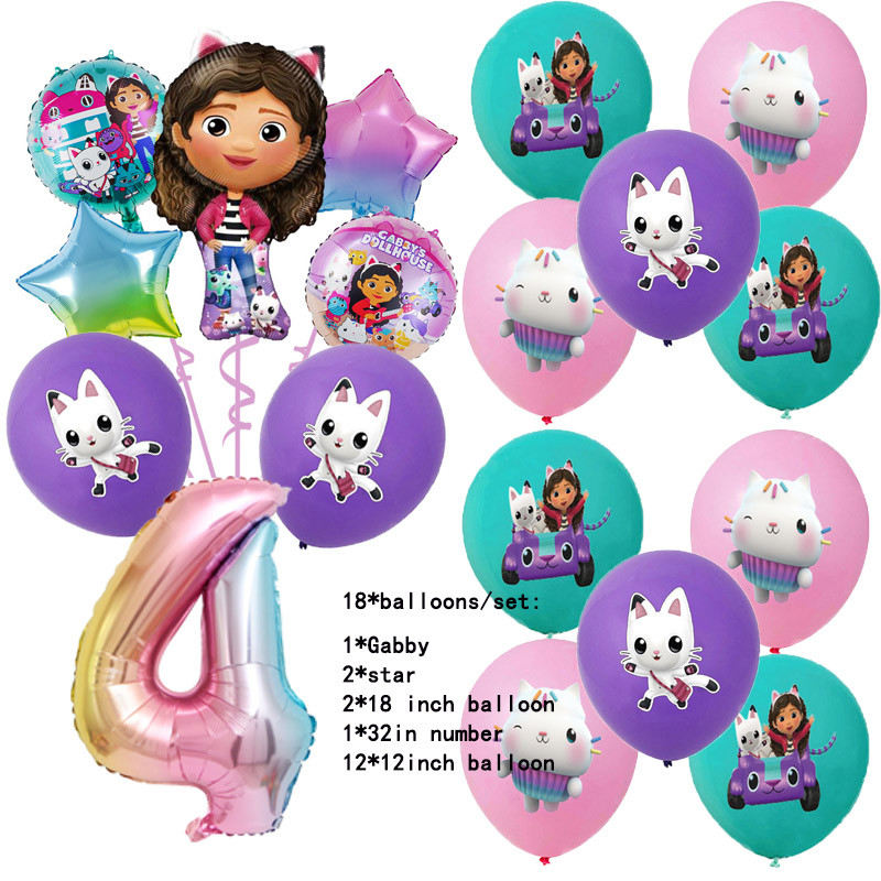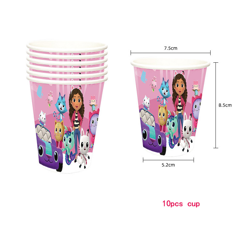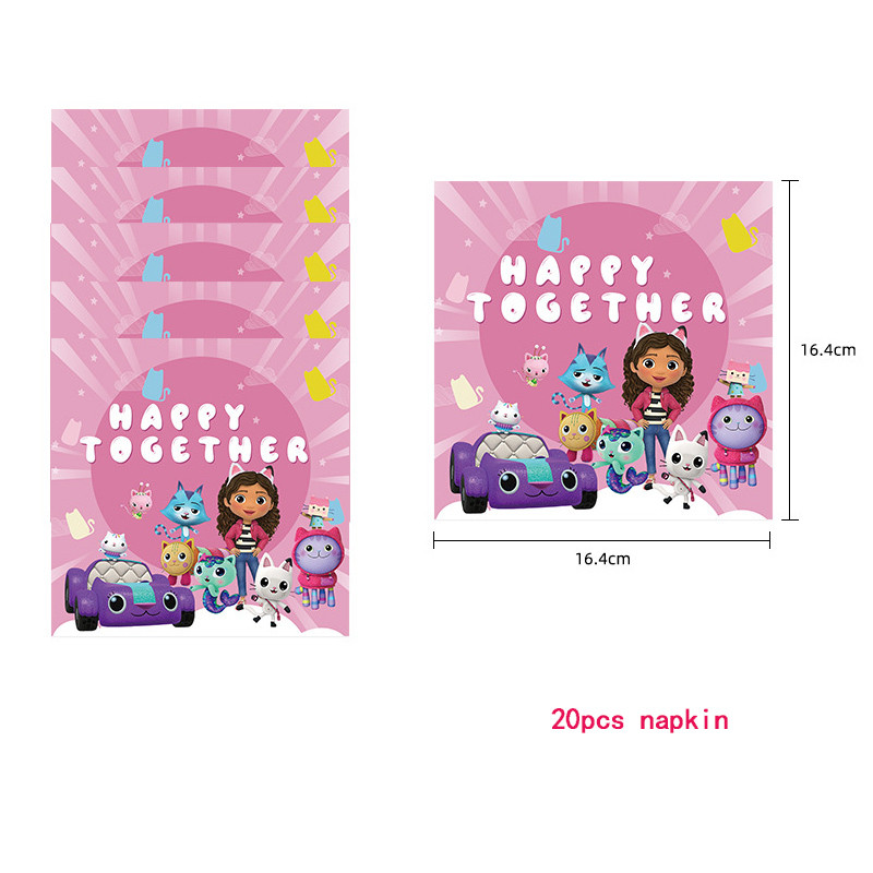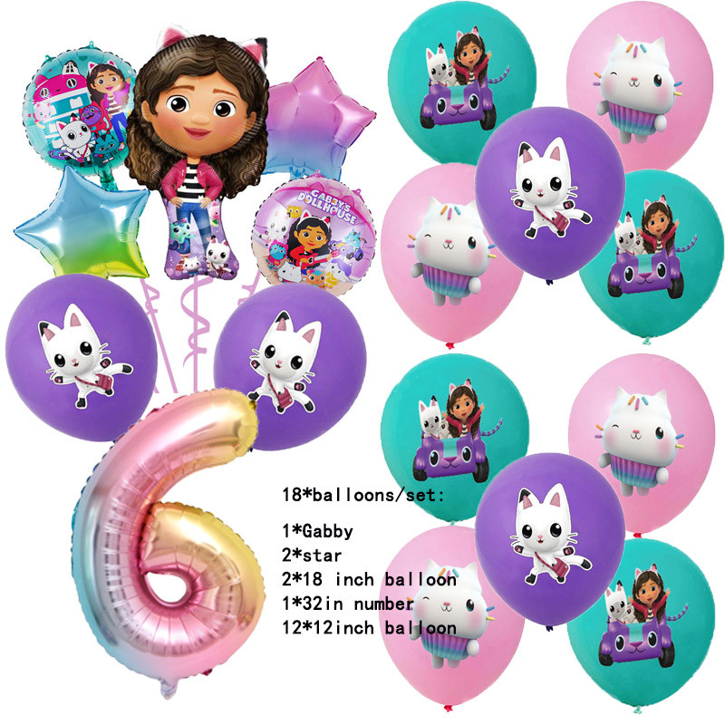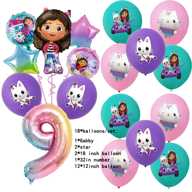 Gabbys Dollhouse Birthday Decoration Cats Balloon Disposable Tableware Backdrop For Girl Gabby Doll House Figures Party Supplies