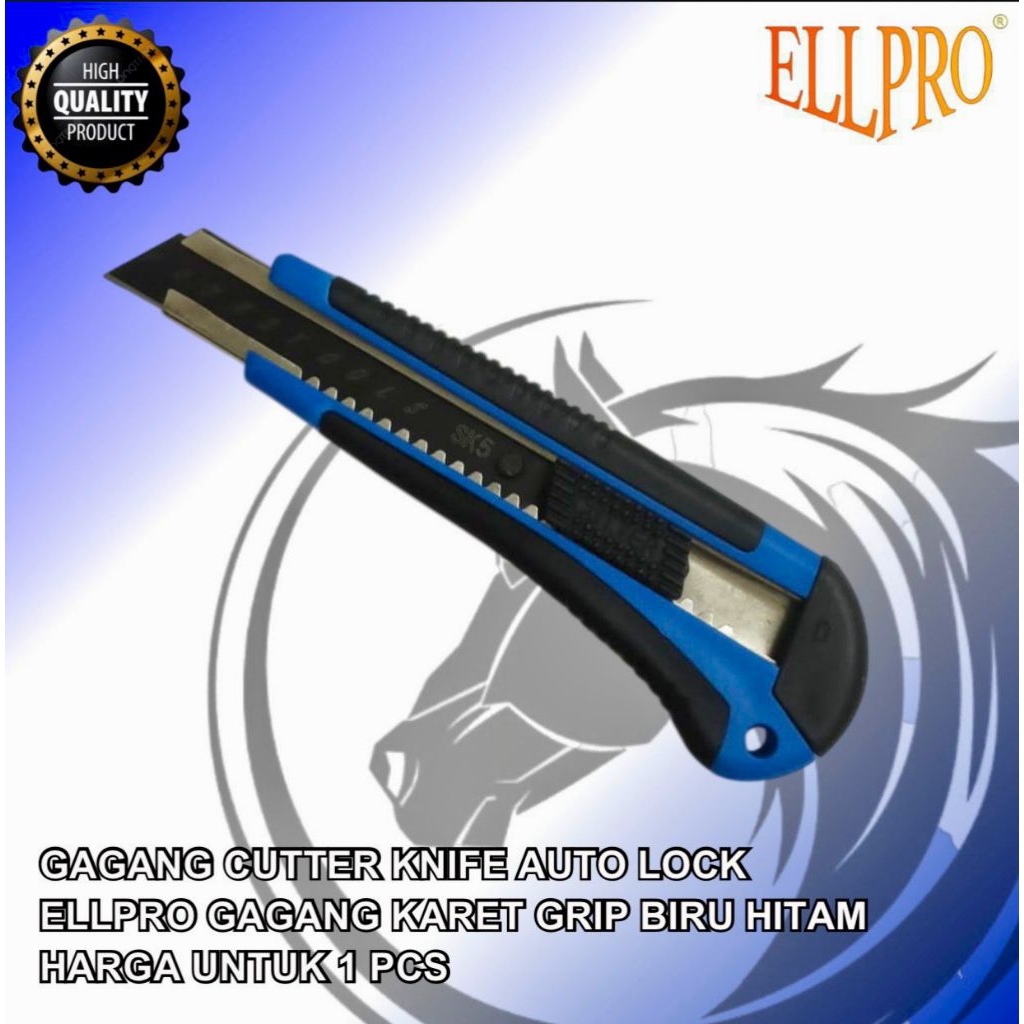 Gagang Cutter ELLPRO Grip Biru Hitam Auto Lock Harga 1 pcs