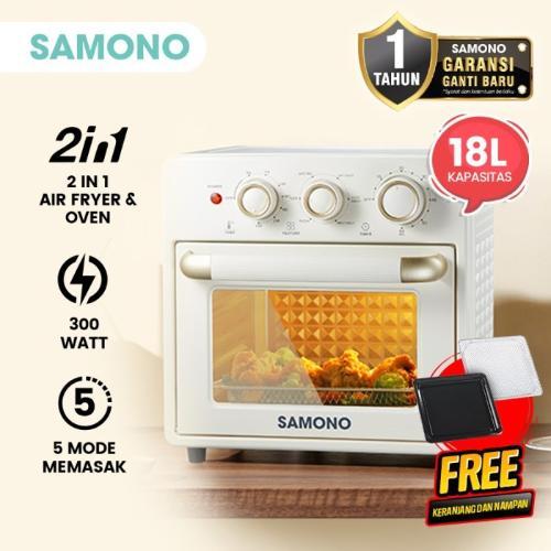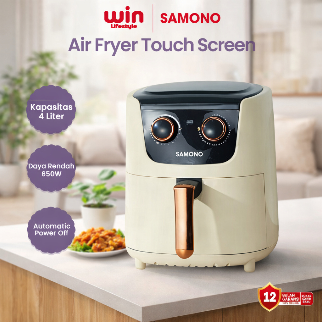 SAMONO Air 4L Fryer Low Watt Airfryer Kaca Transparan Multifungsi Mesin Penggorengan Tanpa Minyak Elektrik Menggoreng Memanggang Membakar Anti Lengket SW-AFW04S Garansi Resmi