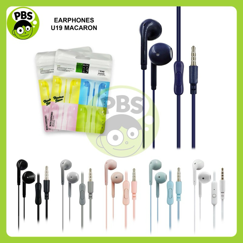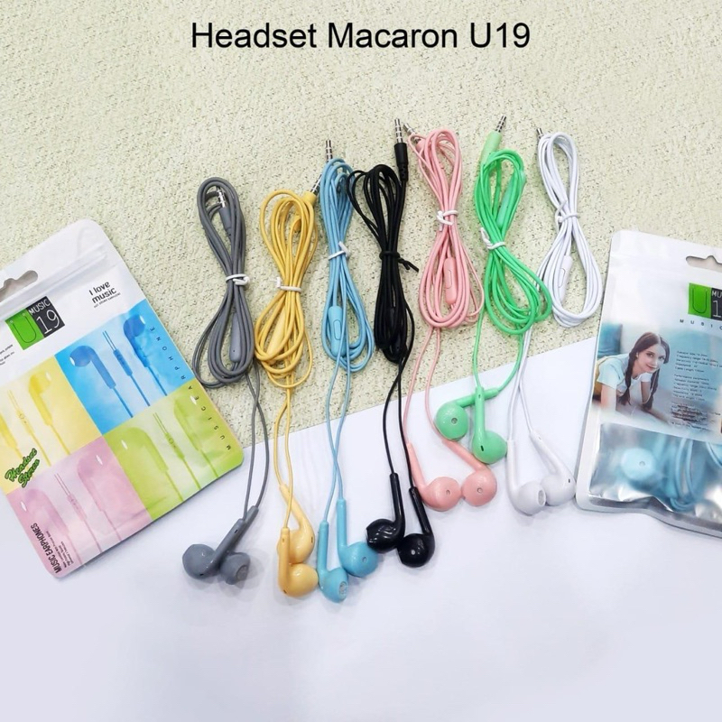 PBS - Handsfree Hp U19 Macaron | Earphone Handphone Macaroon Matte Glossy Colour Hifi Extra Bass | Headset Makaron HF U-19