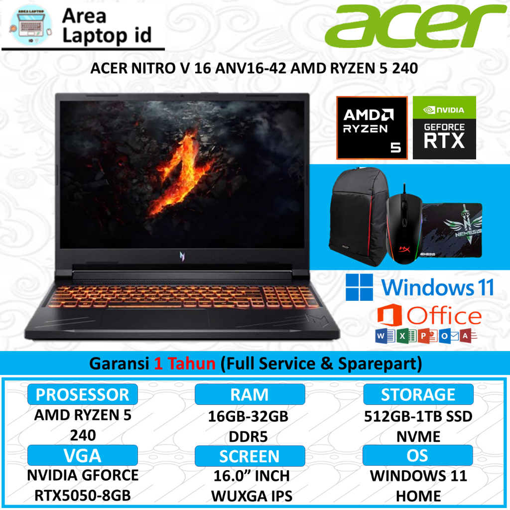 Laptop Gaming Acer Nitro V16 ANV16-42 AMD RYZEN 5 240 16GB 1TB RTX5050-8GB WUXGA IPS 180HZ WIN11