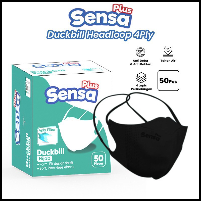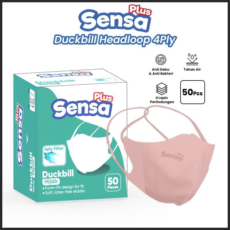 Masker Duckbill Hijab Headloop Sensa Plus 4ply 1 Box 50pcs KS