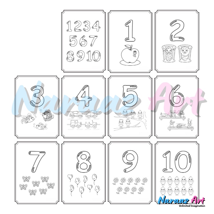 Gambar Mewarnai Angka 1 - 10 Aktivitas Anak TK SD PAUD Gambar Sketsa Bukan Buku