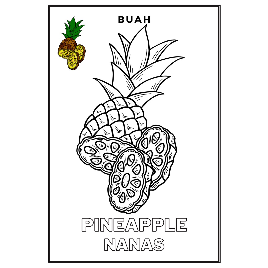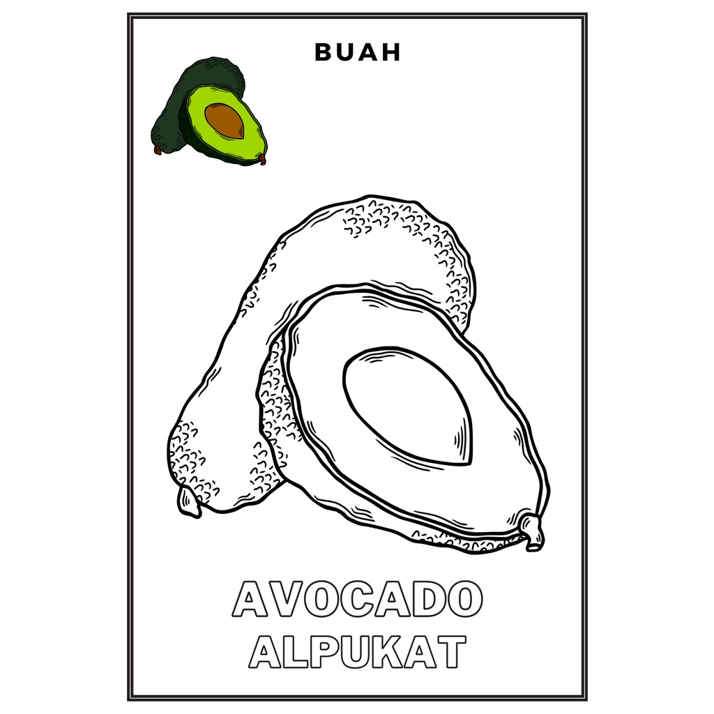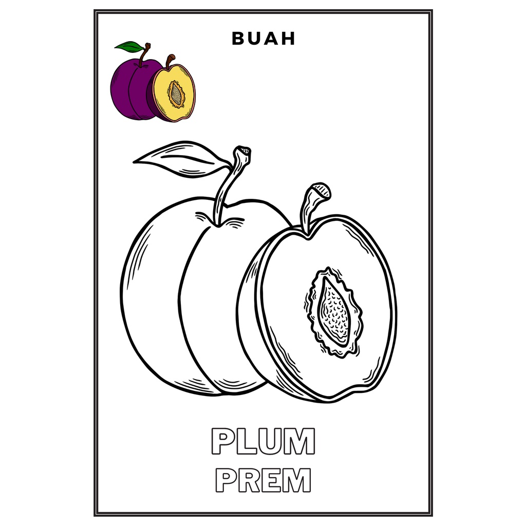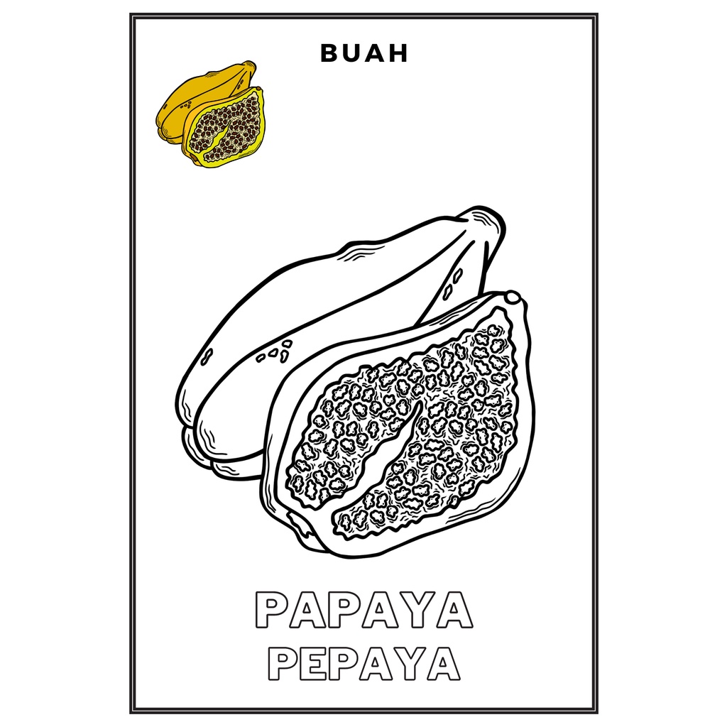 Gambar Mewarnai / Sketsa lukis / drawing sketch Seri Buah- Buahan Kertas HVS A5 100gr Anak TK SD PAUD (Bukan Buku)