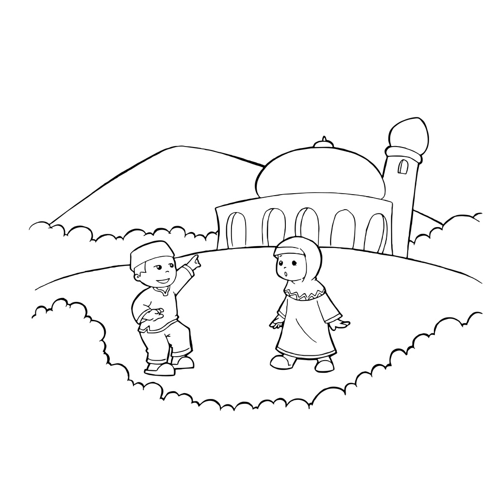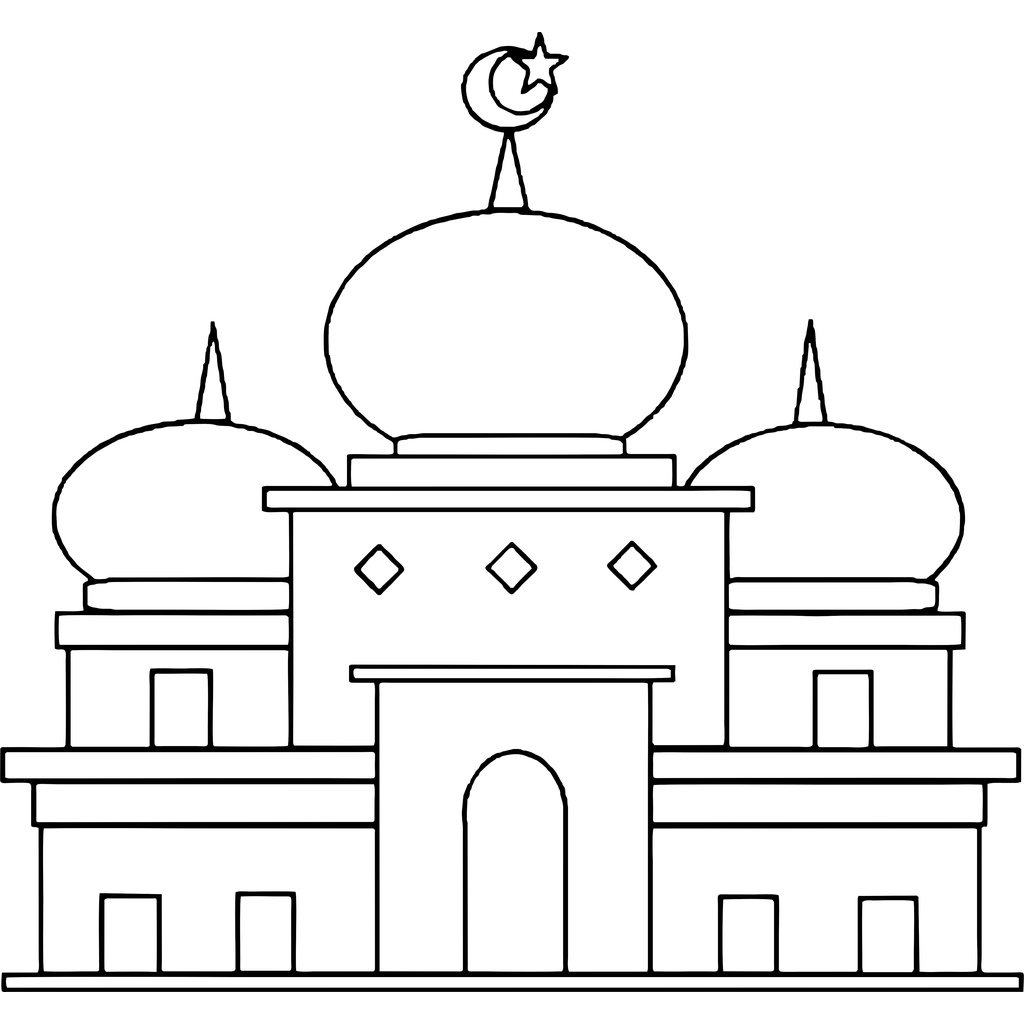 Gambar Sketsa Mewarnai Islami ~ MASJID/ Seketsa Lukis / Drawing Sketch / Menggambar A4 (Bukan Buku) ANAK TK PAUD