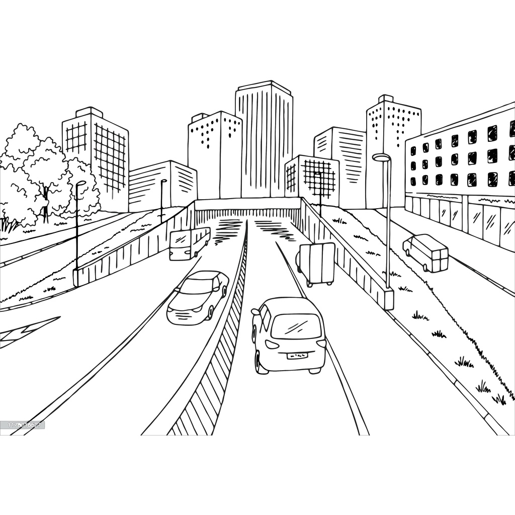 Gambar Sketsa Mewarnai ~ BANGUNAN GEDUNG PERKOTAAN/ Seketsa Lukis / Drawing Sketch / Menggambar A4 (Bukan Buku) ANAK TK PAUD SD