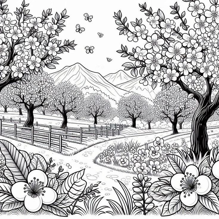 10 lembar Gambar sketsa mewarnai anak TK dan SD tema alam pemandangan