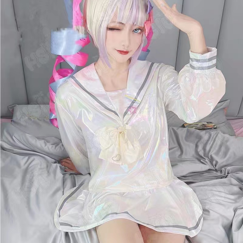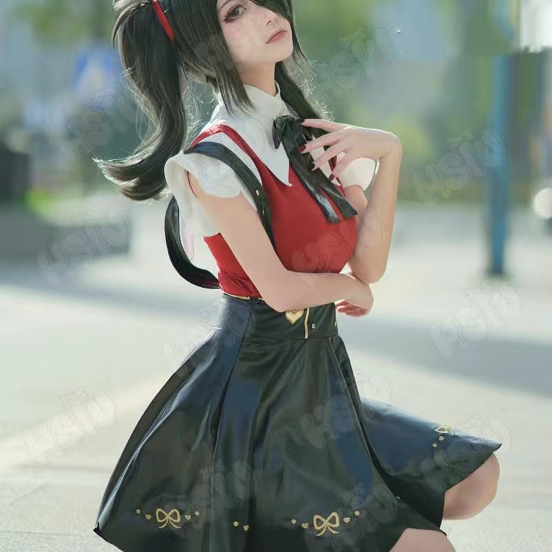 Game Needy Girl Overdose Cosplay Costume Wig Shoes Anime JK Uniform Leather Skirt Set Abyss KAngel Ame Chan Cosplay Costume