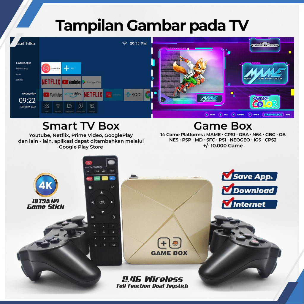 Game box Android HD 4K Super Console Video Gamebox 50+ Emulator 40000+ Retro Games with TV Box 9.1