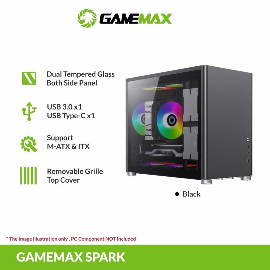 Gamemax Casing PC Gaming SPARK M-ATX / Casing Komputer M ATX