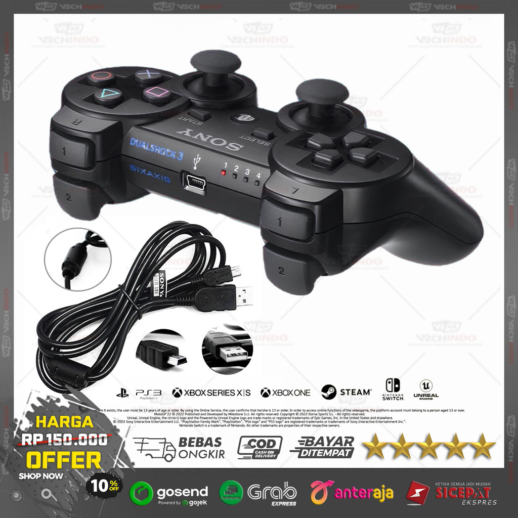 Gamepad Wireless Stick PS3 Original Premium Non BOX With USB Charger Stik PS 3 !!