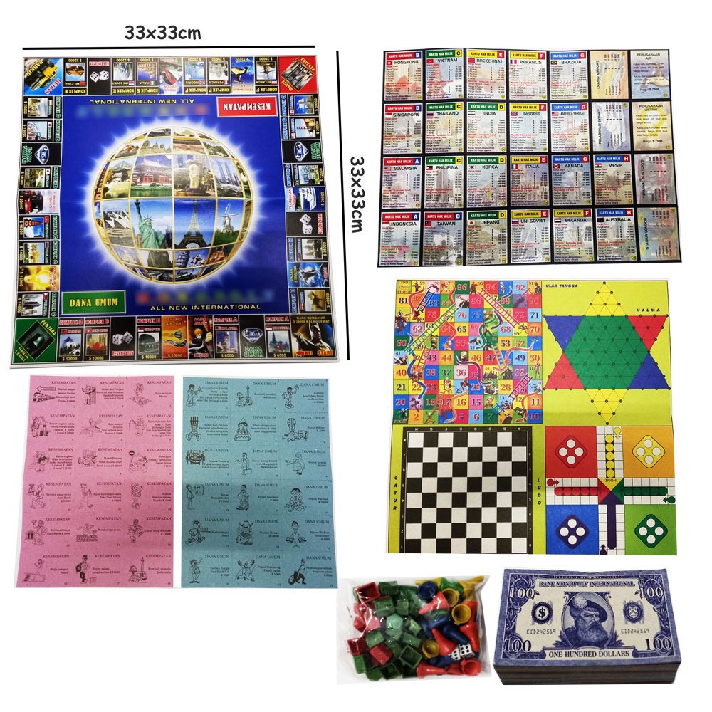 Monopili Games 4 IN 1 - E7022 PERMAINAN KELUARGA MAINAN JADUL BOARD GAME MONOPOLY CATUR HALMA LUDO ULAR TANGGA SNAKE LADDER