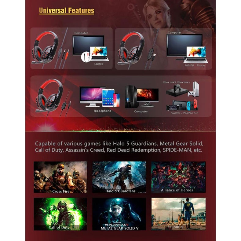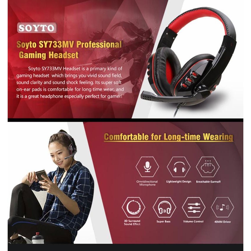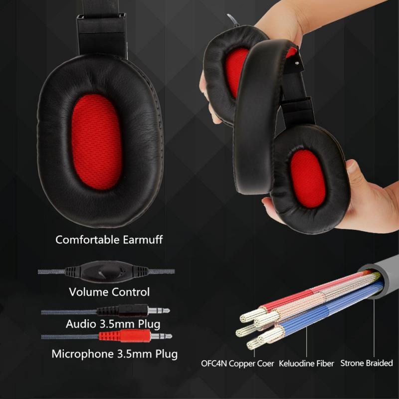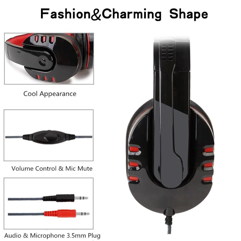 Gaming Headphone Headset + Mic Microphone Mikrofon Hedset Game Heset Ngegame Bass Besar PC Notebook Laptop