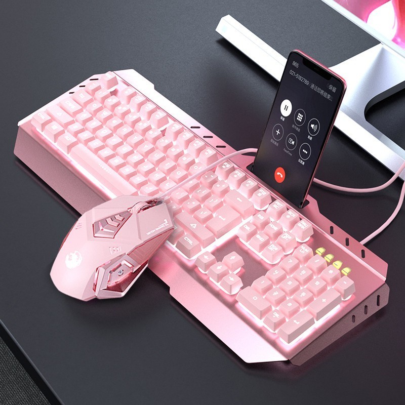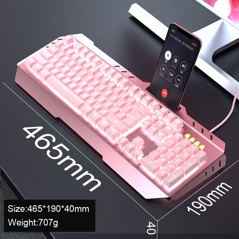 Gaming Keyboard dan mouse full set semi Mechanical Feel Pink Girl Cute LED light Mekanikal keboard kybord wanita Gamer kabel lucu anime mecha backlight Keybord USB Wired kibord for perempuan PC Komputer eksternal Laptop keyborad - KEYBOARD GAMING MURAH