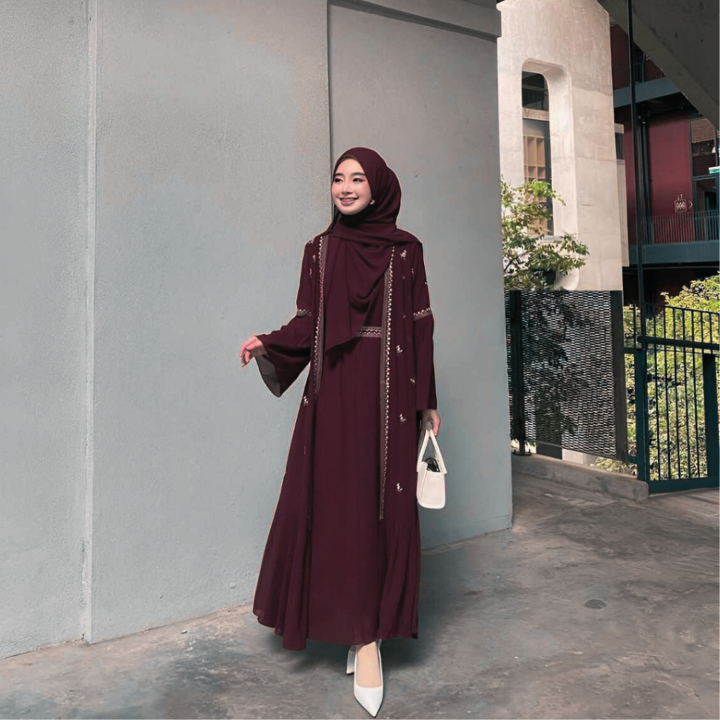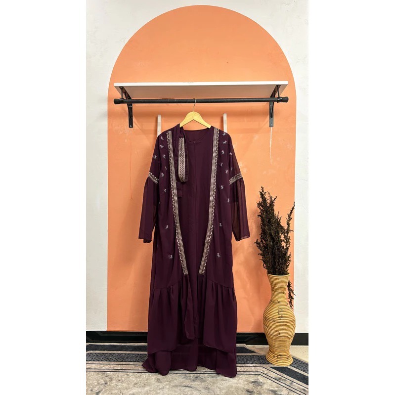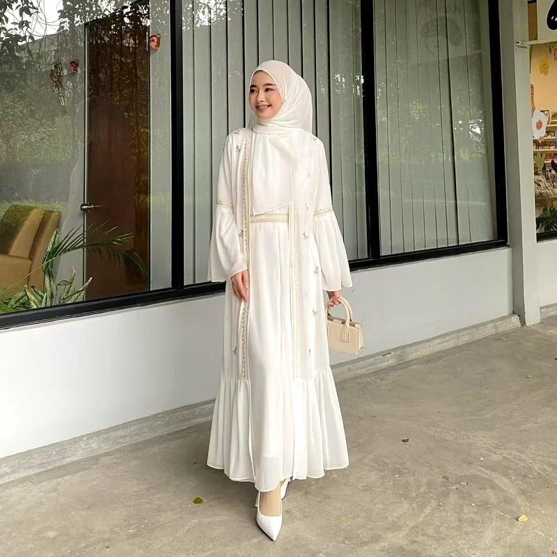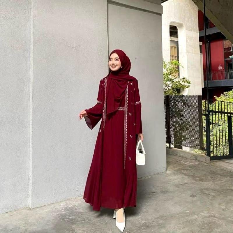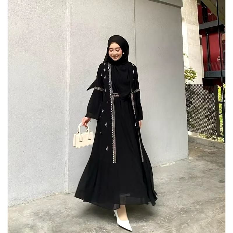 Gamis Abaya Safwa Wanita Remaja Kekinian Aplikasi Bordir Ceruty Babydoll full puring Dress Mewah Kondangan