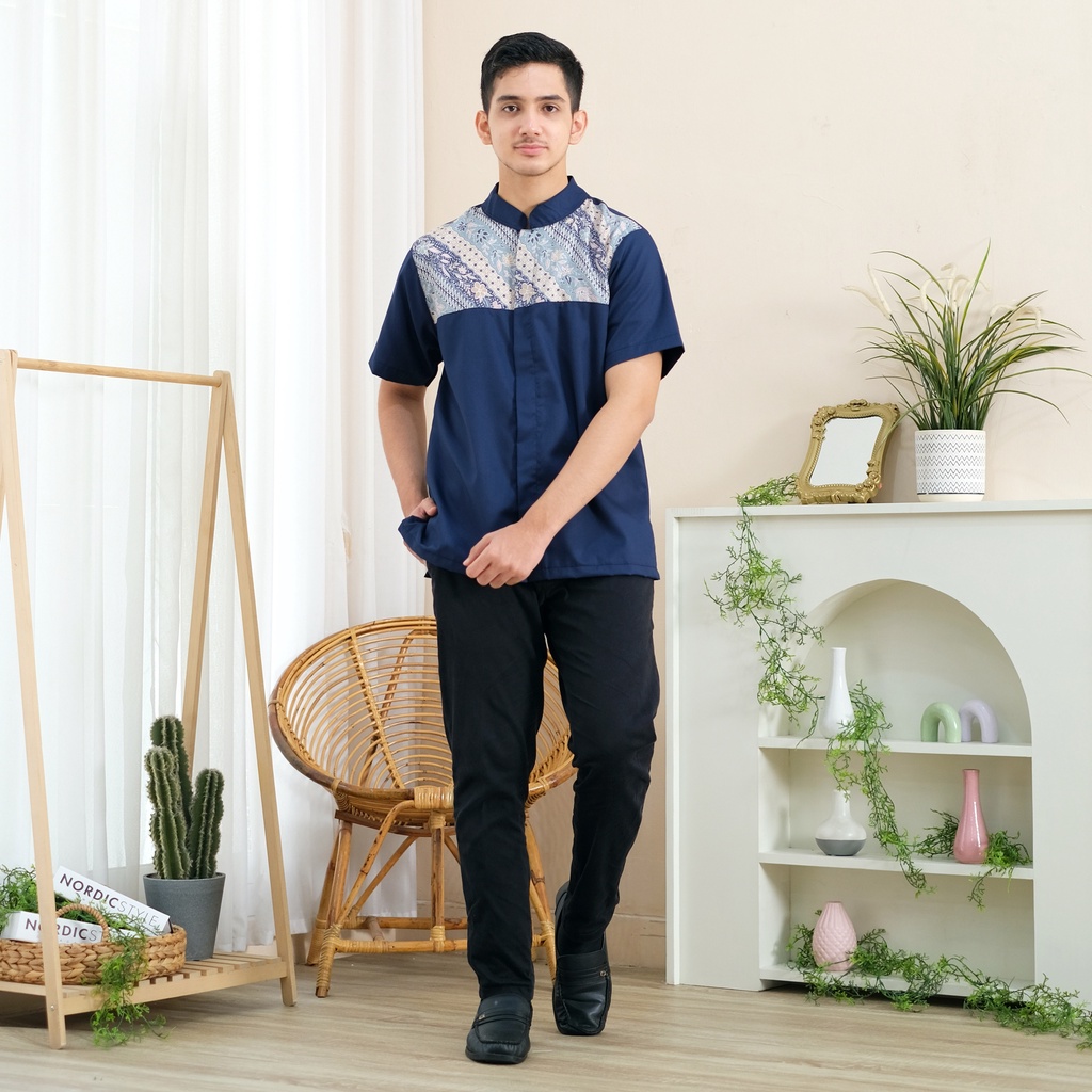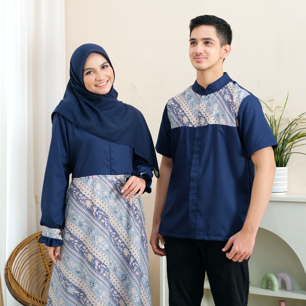 Gamis Batik Couple GZ0383 Navy/ Gamis Couple Navy/ Gamis Koko Couple Batik Navy