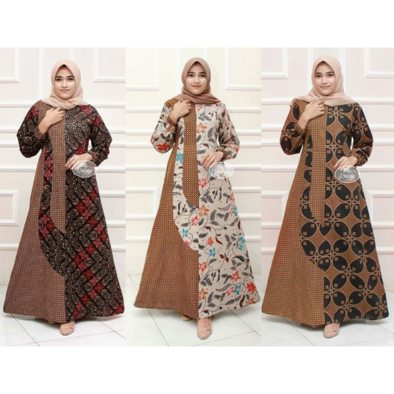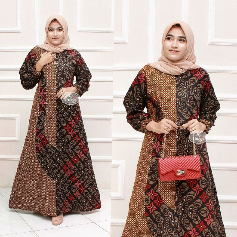 Gamis Batik Modern Murah Katun Halus Kombinasi Truntum, Ori GAMIS BATIK Pekalongan BIG SIZE JUMBO