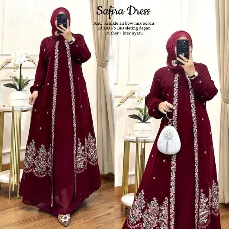 Gamis Bordir Premium Matt Cerinkle Jumbo Ld 120 Bordir Bunga Cantik SYAFIRA Gamis Pesta Mewah Elegan Model Layer Menyatu Baju Gamis Wanita Motif Bordir Bunga Aceh