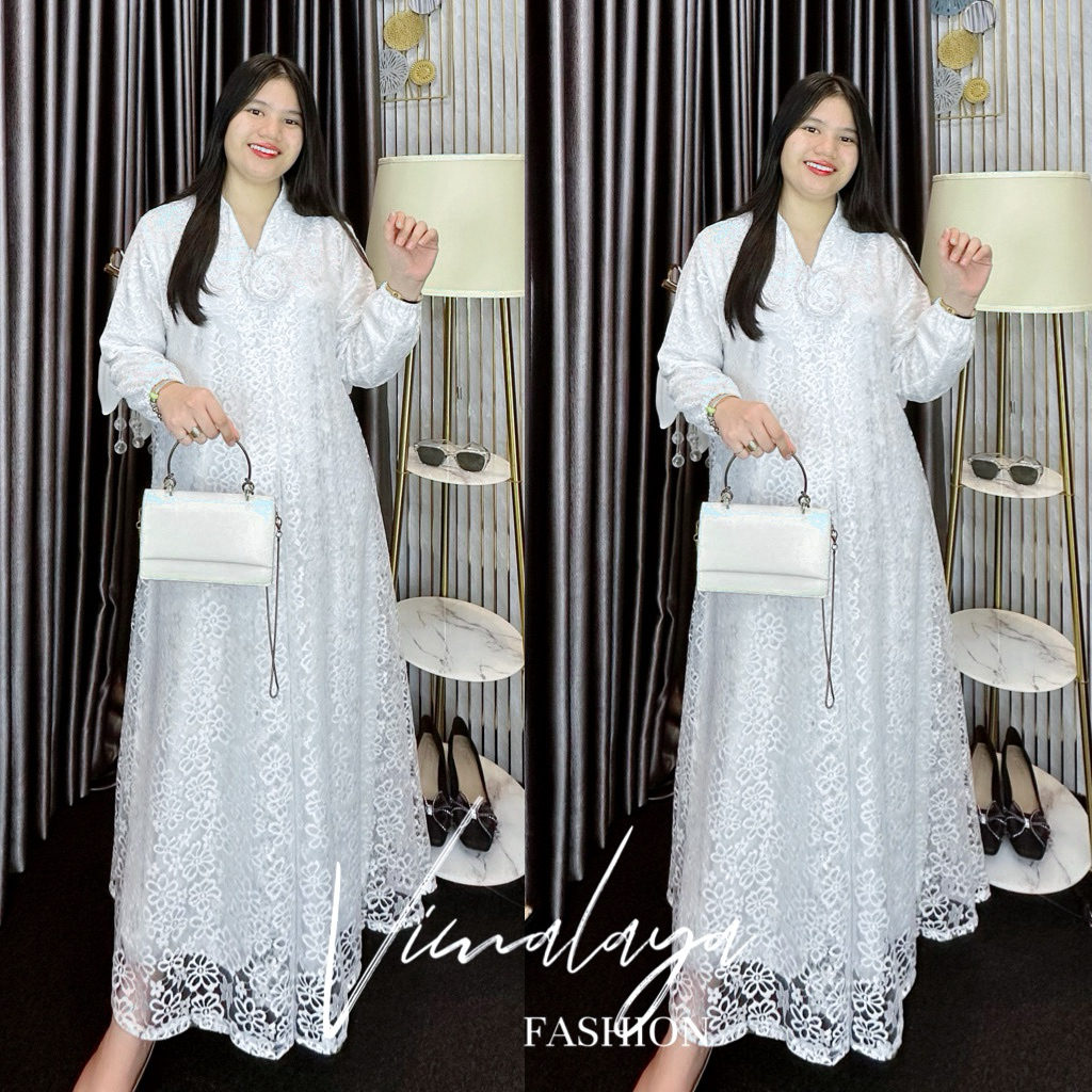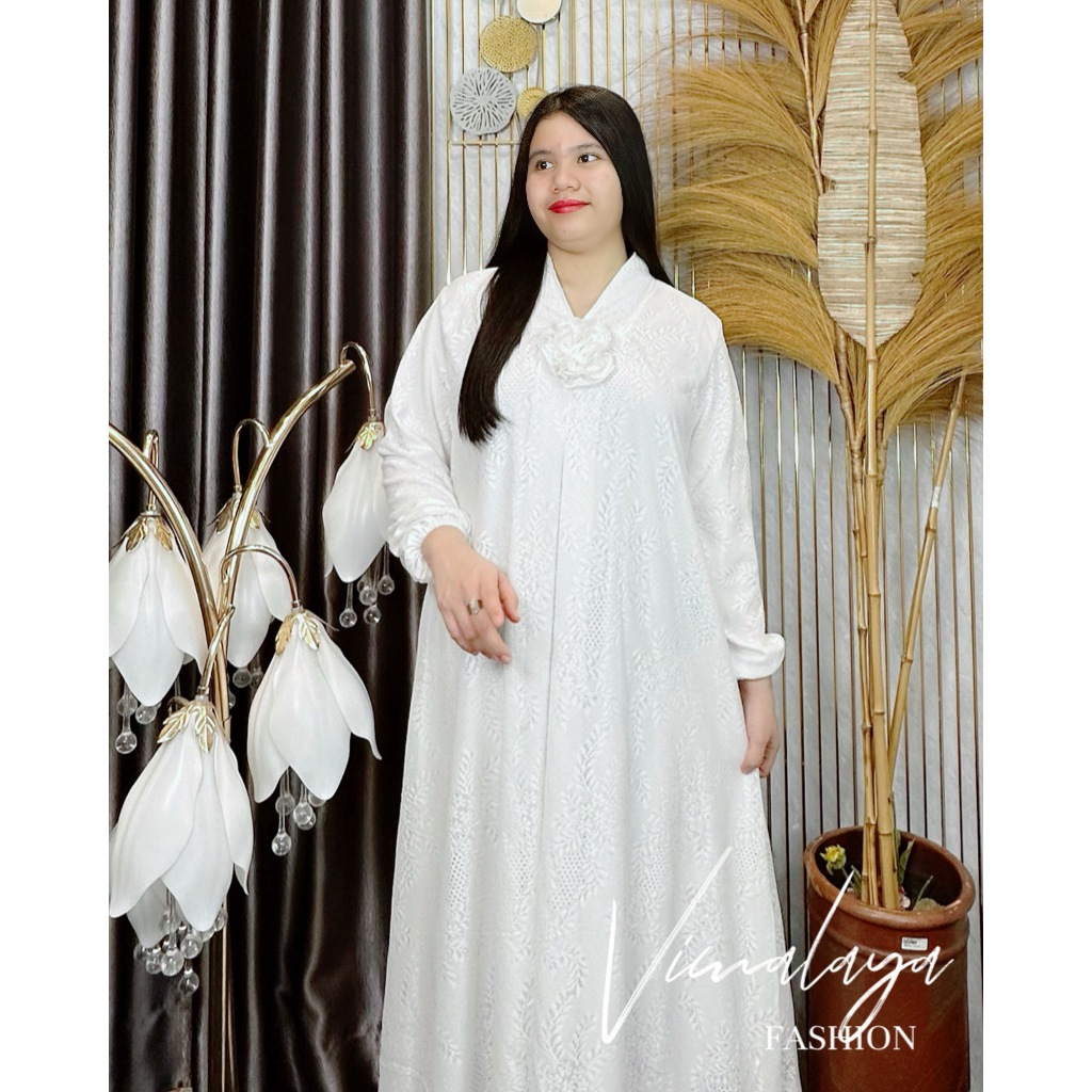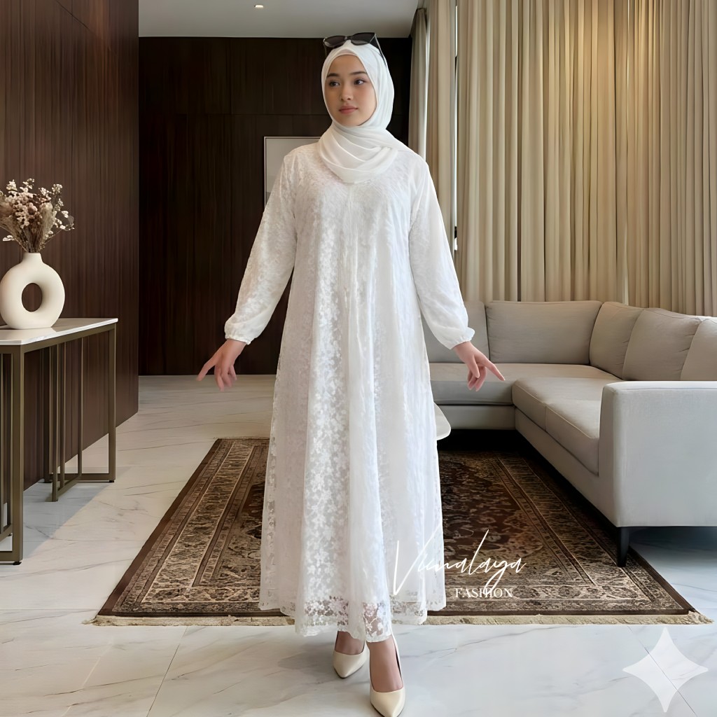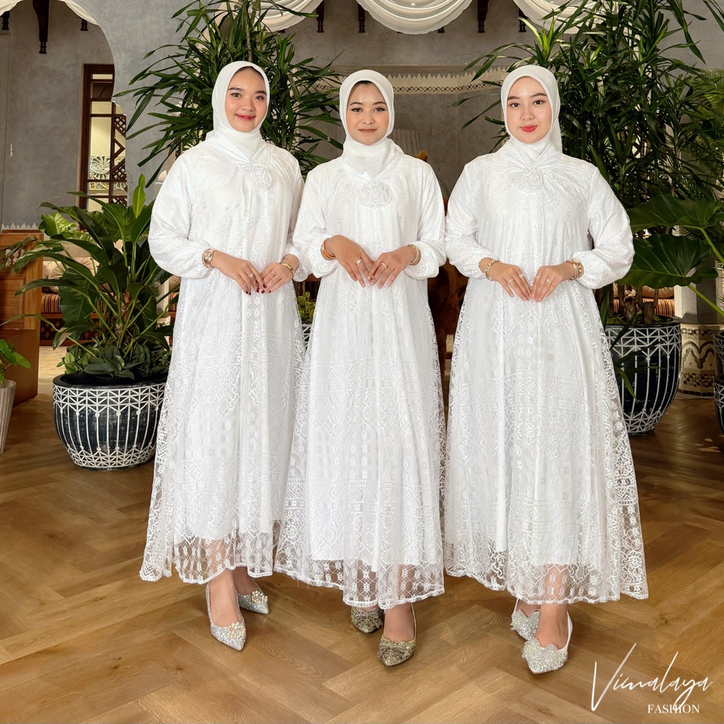 Gamis Brukat Polos Putih Kartini A-Line Gaun Muslim Vima 75385