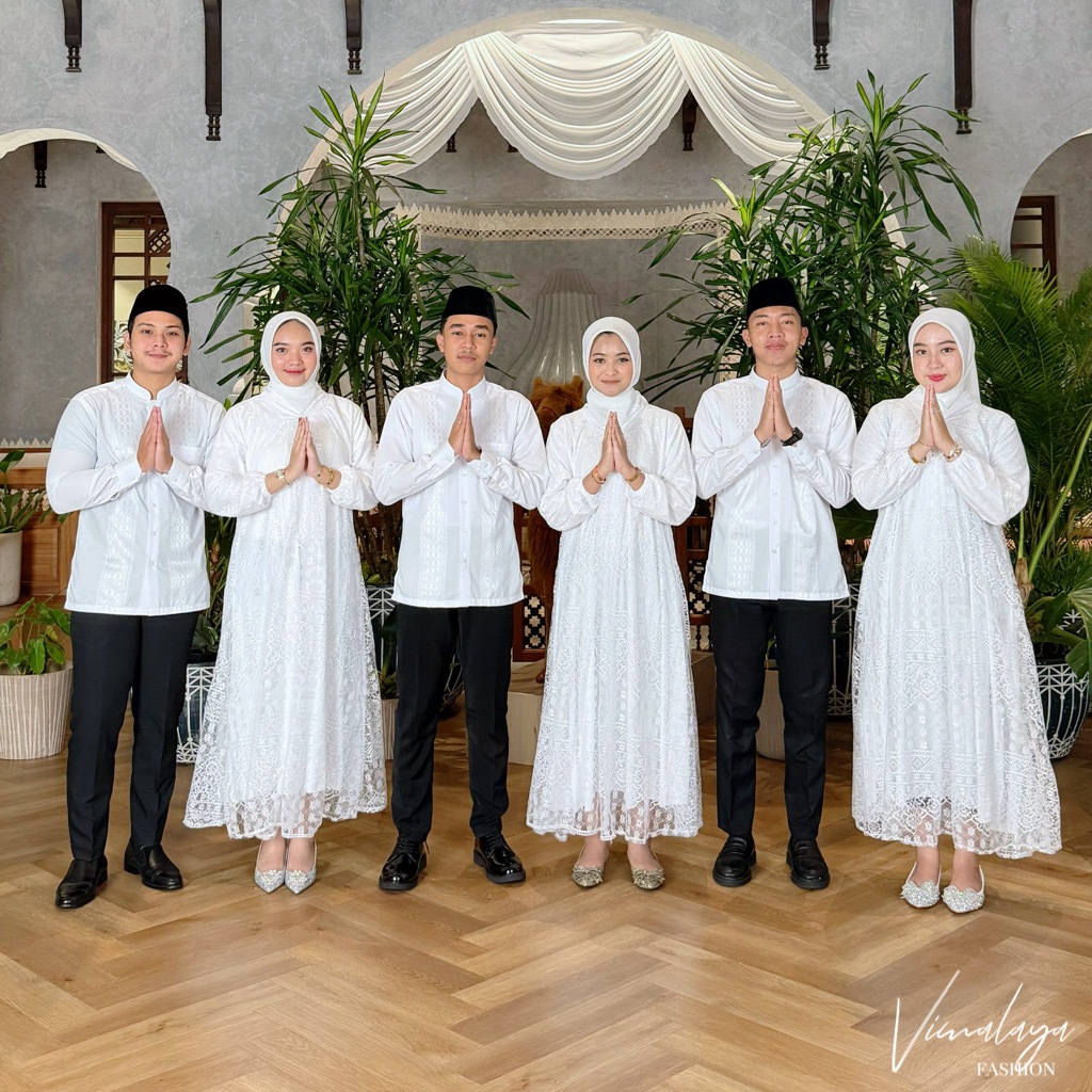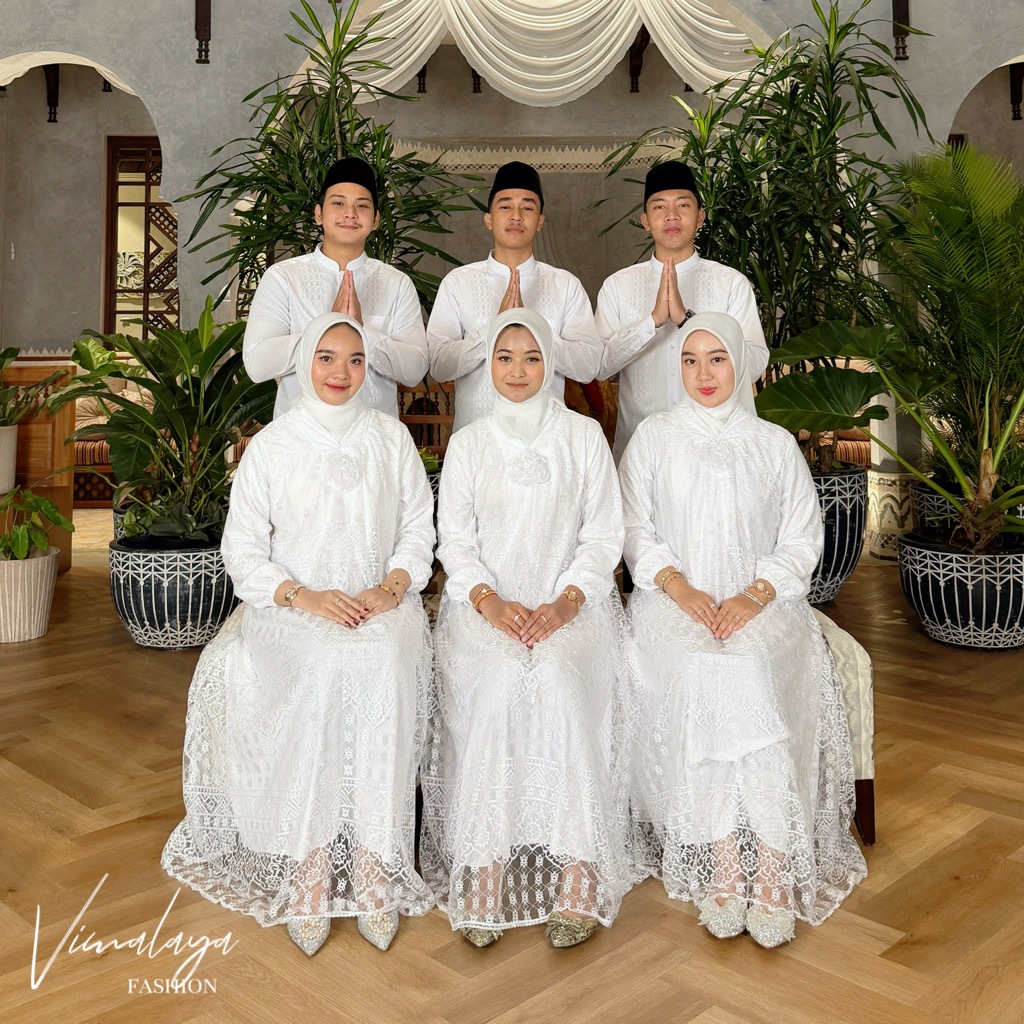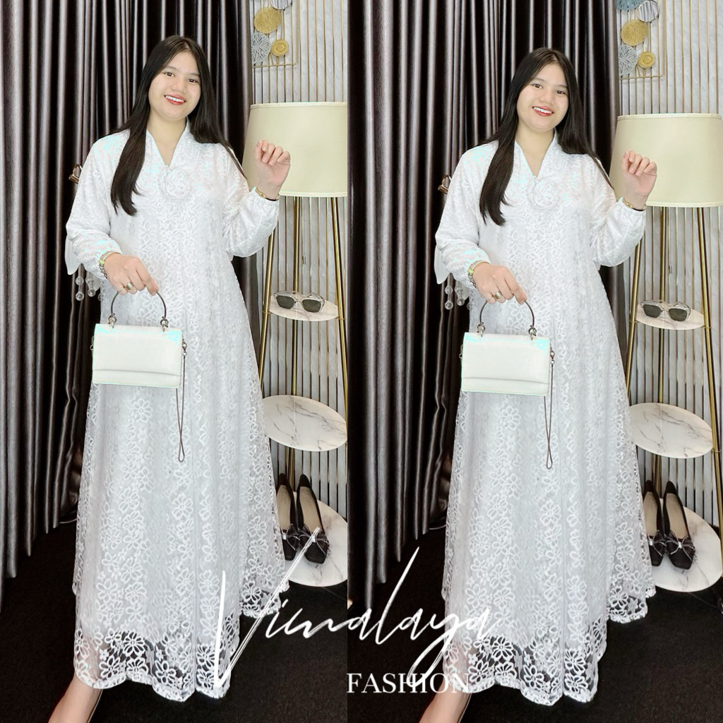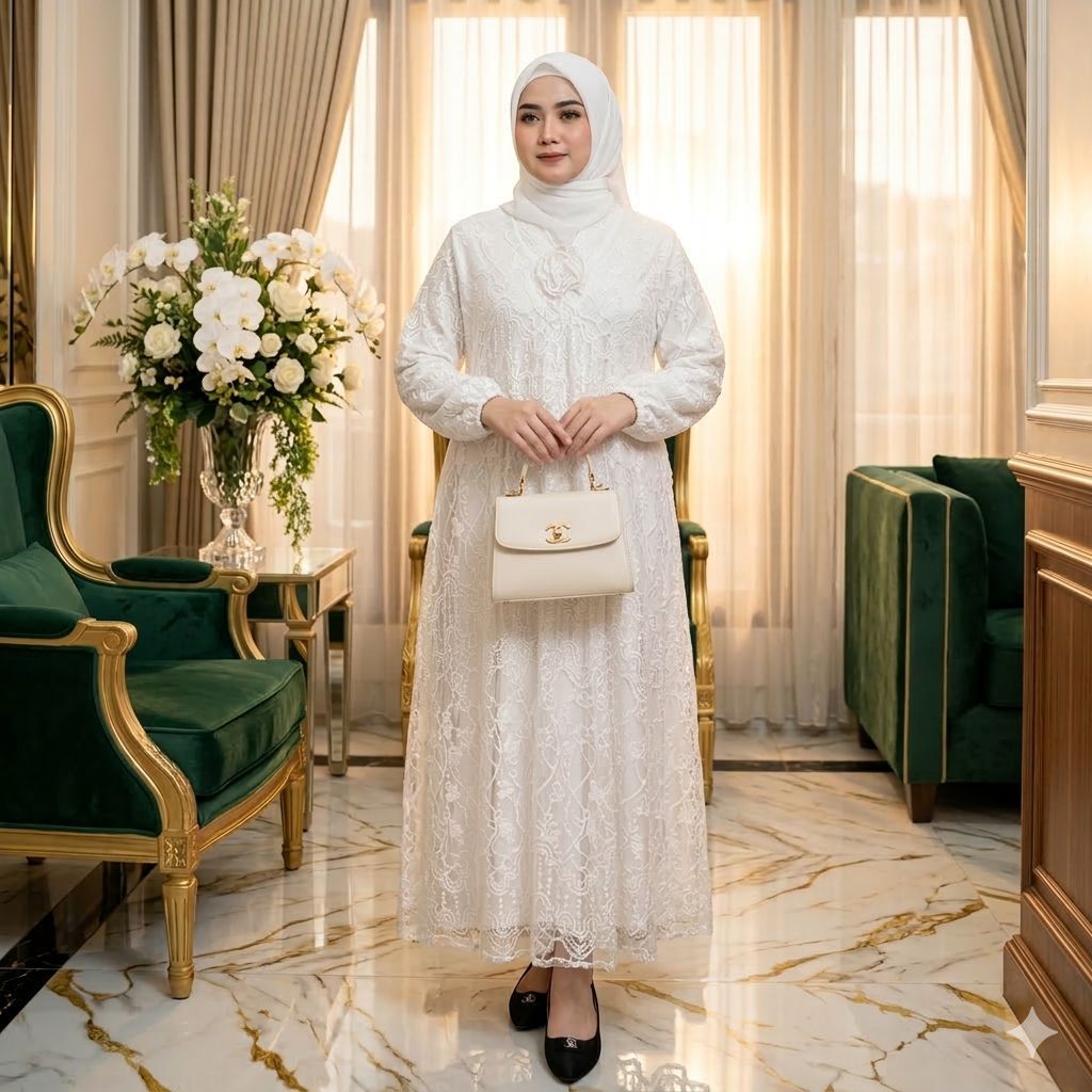 Gamis Brukat Polos Putih Kartini A-Line Gaun Muslim Vima 75385