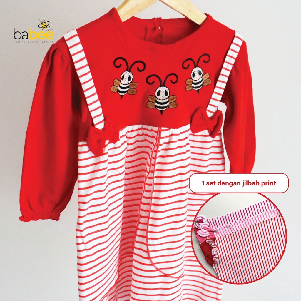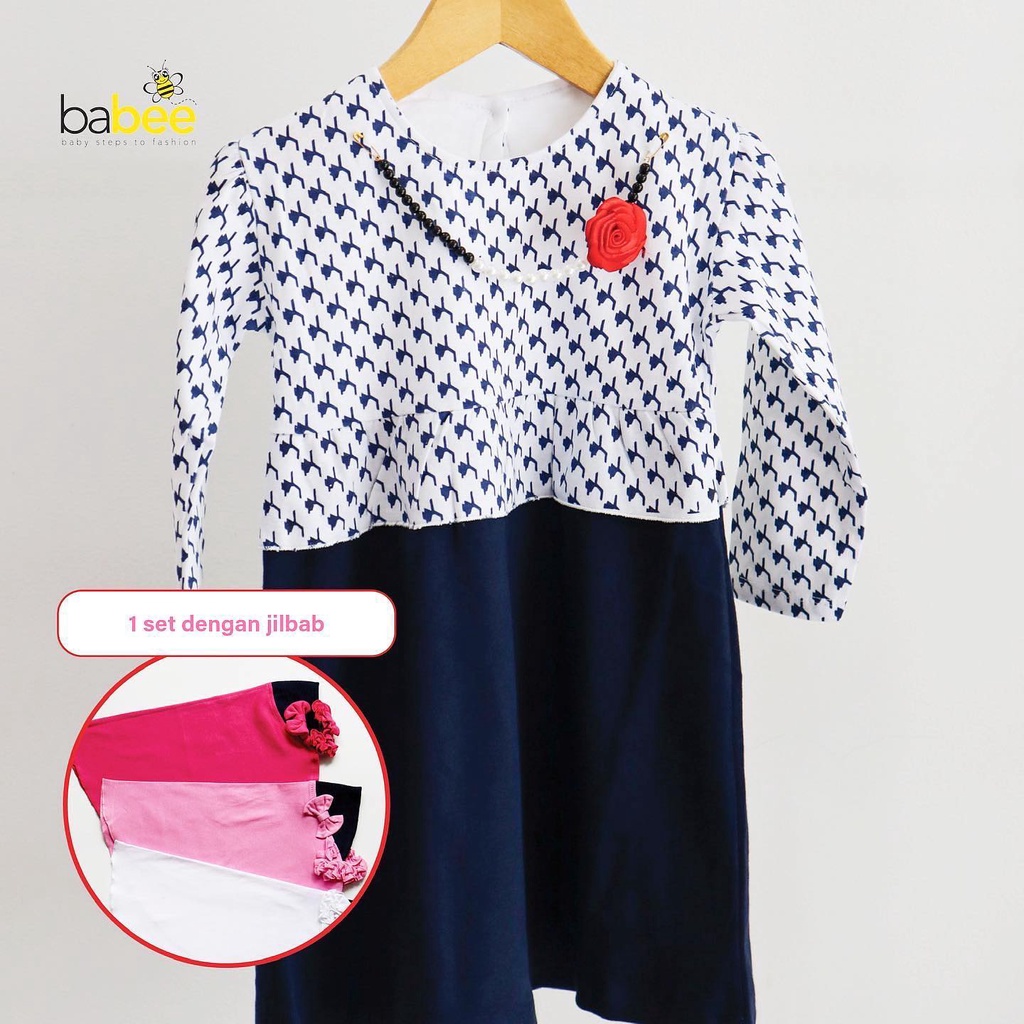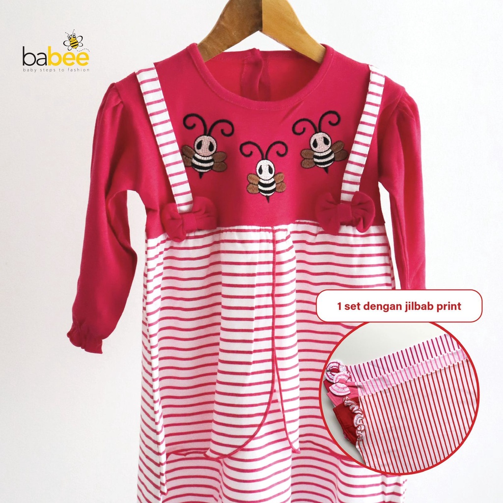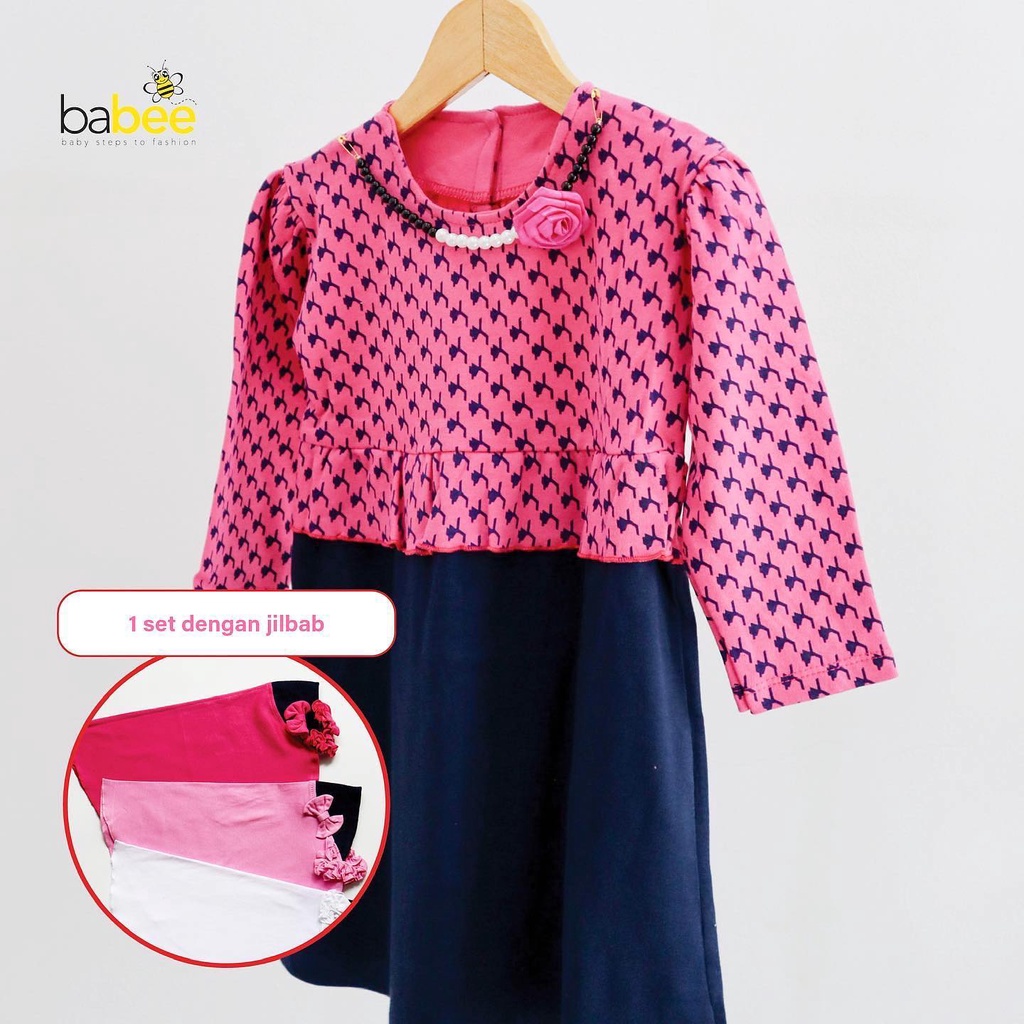 Gamis + Hijab MEWAH KALUNG LITTLE BEE LAURA KIMONO BON HANBOOK Setelan Dress Baju Muslim Hijab Lucu Fashion Anak Bayi Perempuan Cewek Terlaris Terbaru Murah Babeebabyshop