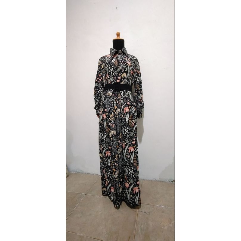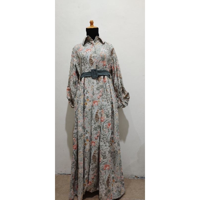 Gamis Lengan Balon Motif Manis + Belt